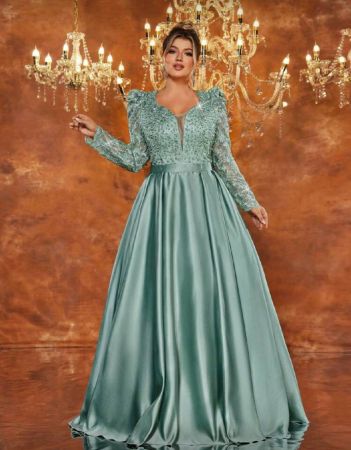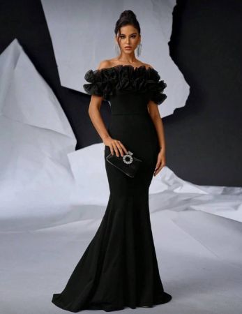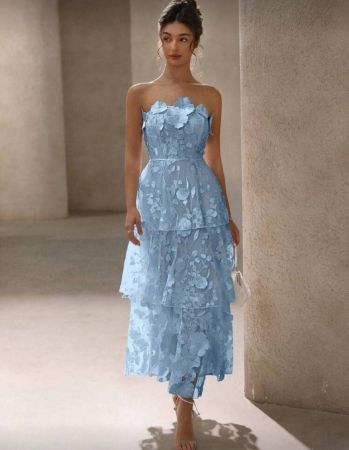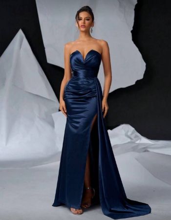 Glamrae ثوب سهرة أنيق وفاخر أزرق داكن من الساتان اللامع والمرن، ذو فتحة رقبة على شكل حرف V وكأس صدر محبوكة عمودياً، وطيات منقولة كمزدوجة على الأكمام والجانب والأسفل، مزين بطبقات متساقطة من الزينة المناسبة لحفلات الزفاف والمناسبات والحفلات التخرج، بأسلوب صناعي ثقيل، مناسب لحفلات التخرج وحفلات عيد الميلاد