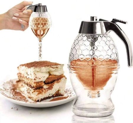 وعاء عسل بضغط الزر، زجاجة ضغط مغلقة بالبلاستيك، موزع تخزين بشكل قمع، موزع ضغط