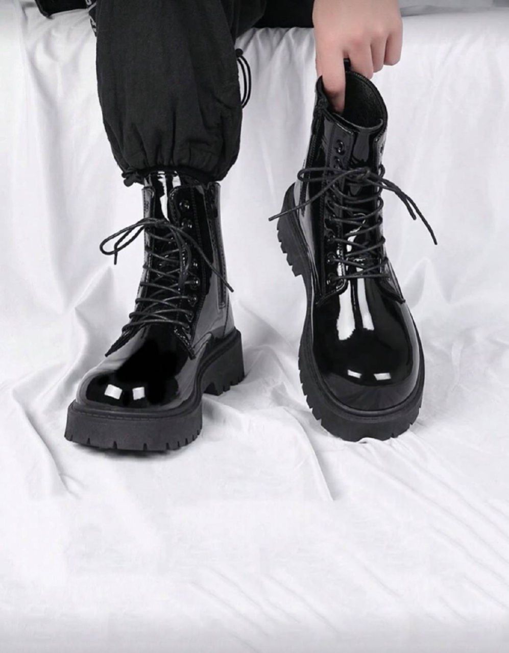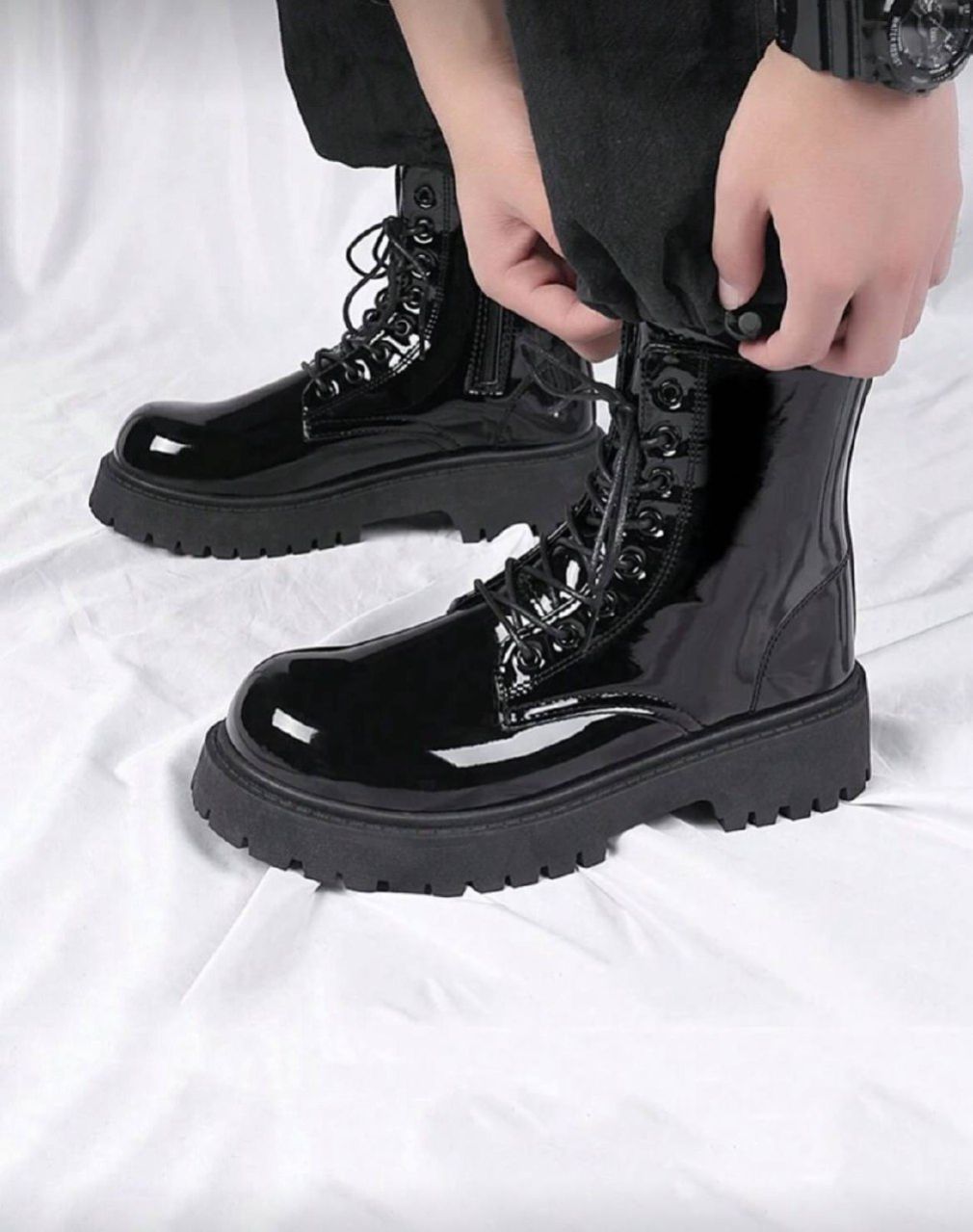 0 Review Of Product بوت خارجية للرجال موديل جديد للخريف بوت دبابات بوت حمولة - بوت الرجال أسلوب بريطاني موديل جديد سميكة القاعدة بوت دبابات من الجلد عالية الكاحل ذات لمعان