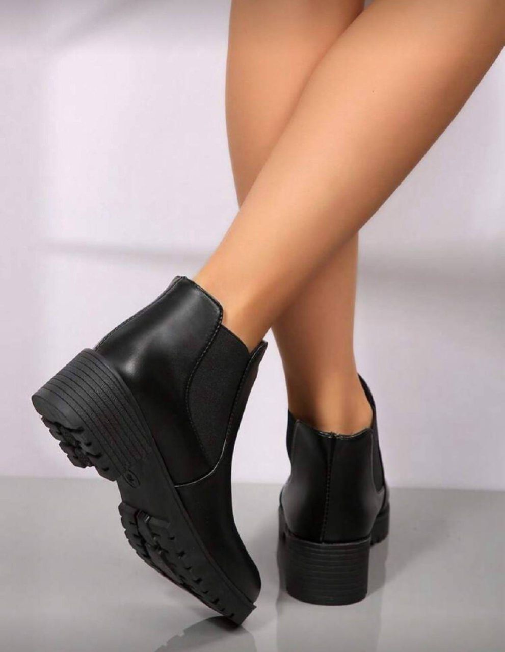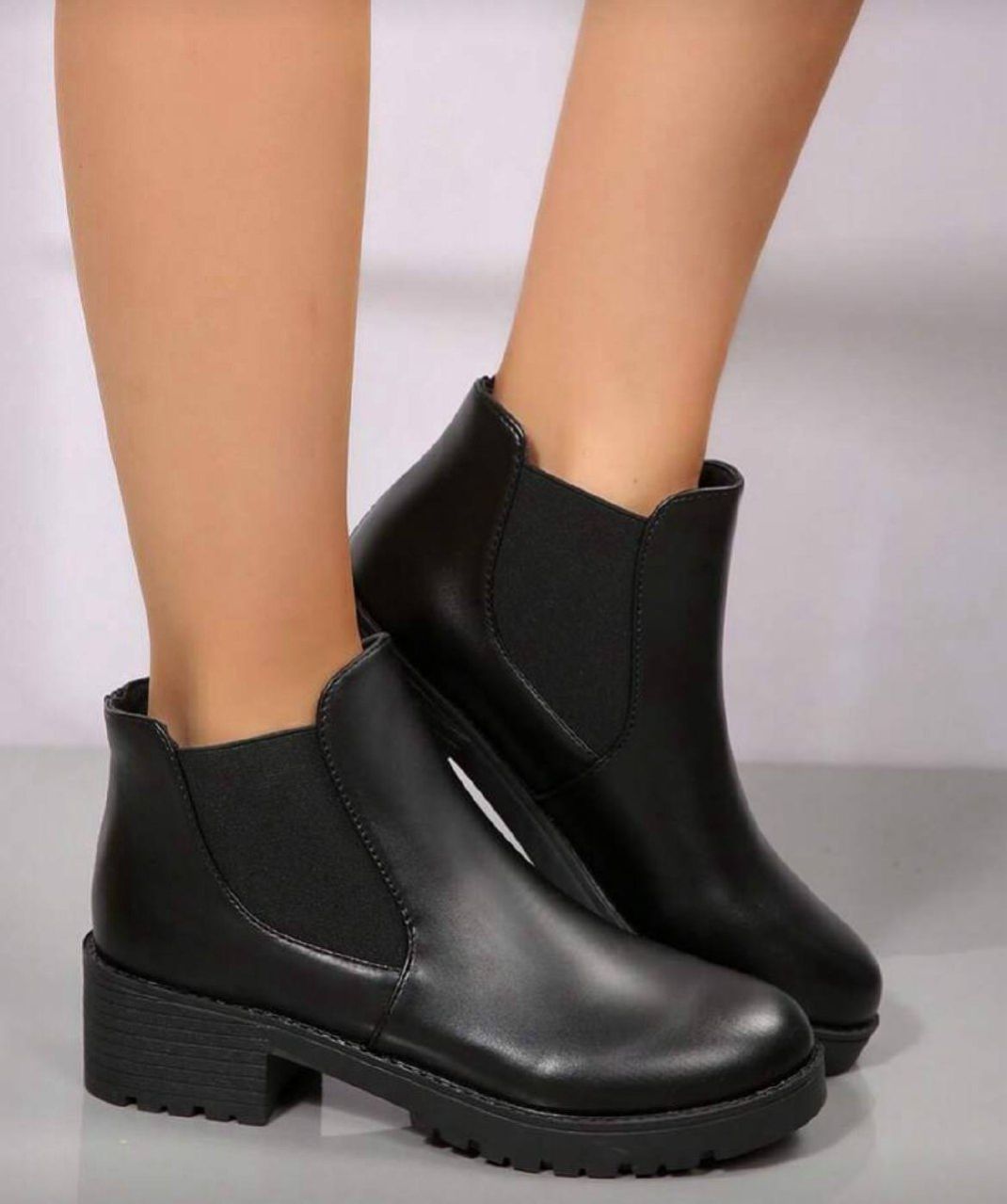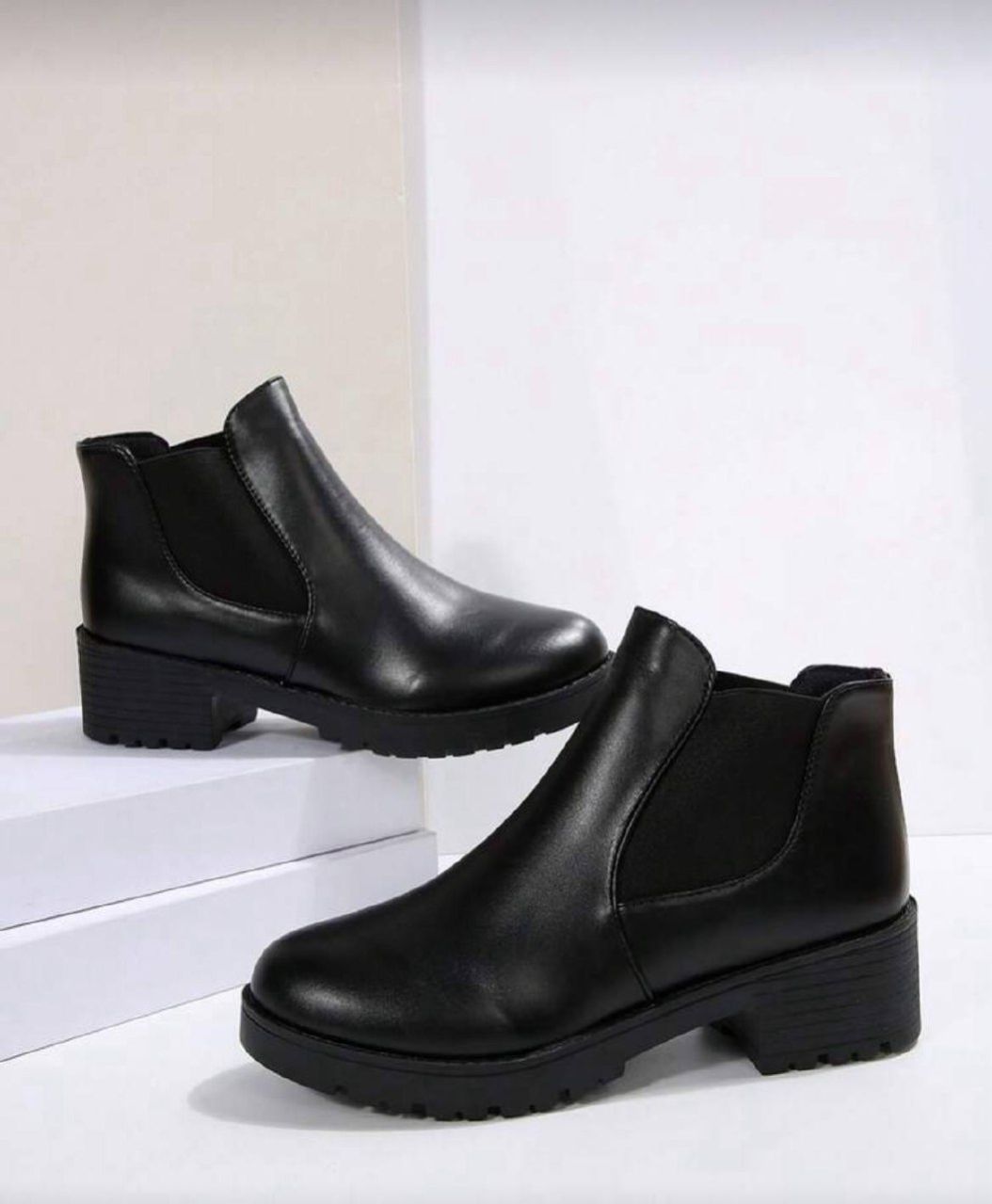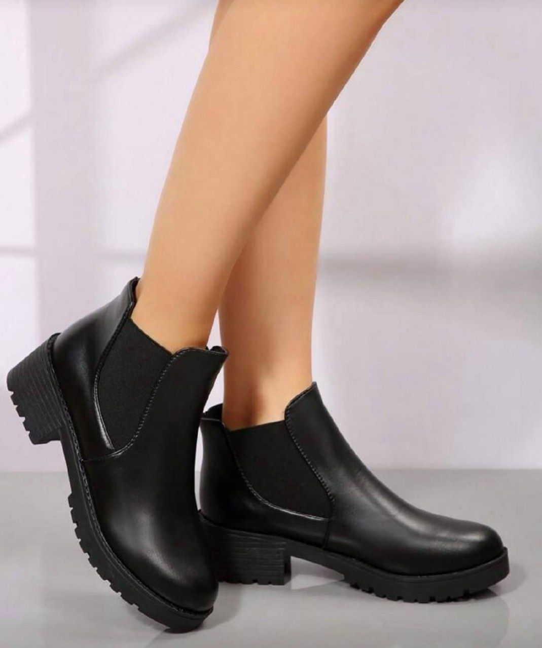 بوت قصيرة للنساء، لون أحادي كعب مربع، رؤوس مستديرة، بوت فستان، طراز مدرسي كلاسيكي، مريحة وقوية، بوت كاحل سهلة الارتداء، بوت خارجية مزينة بإبزيم