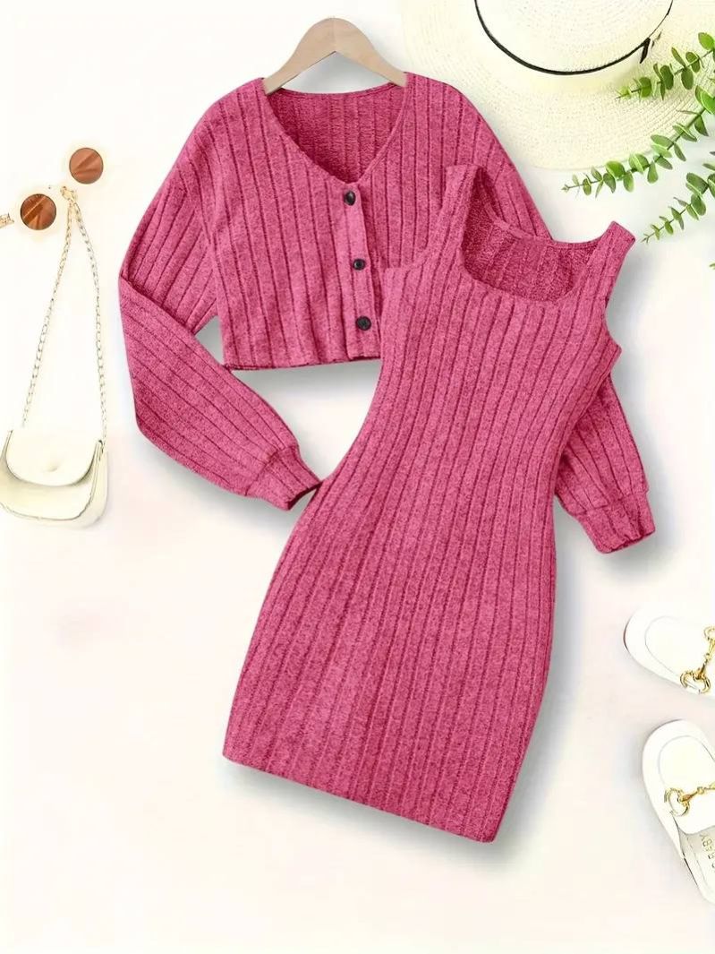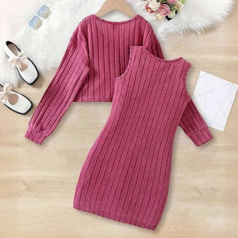 طقم ملابس خريفية شتوية للبنات من وي بلوم، معطف طويل الأكمام مضلع مع فستان بدون أكمام، ملابس كاجوال مناسبة للمدرسة والحفلات، طقم ملابس ناعم للبنات