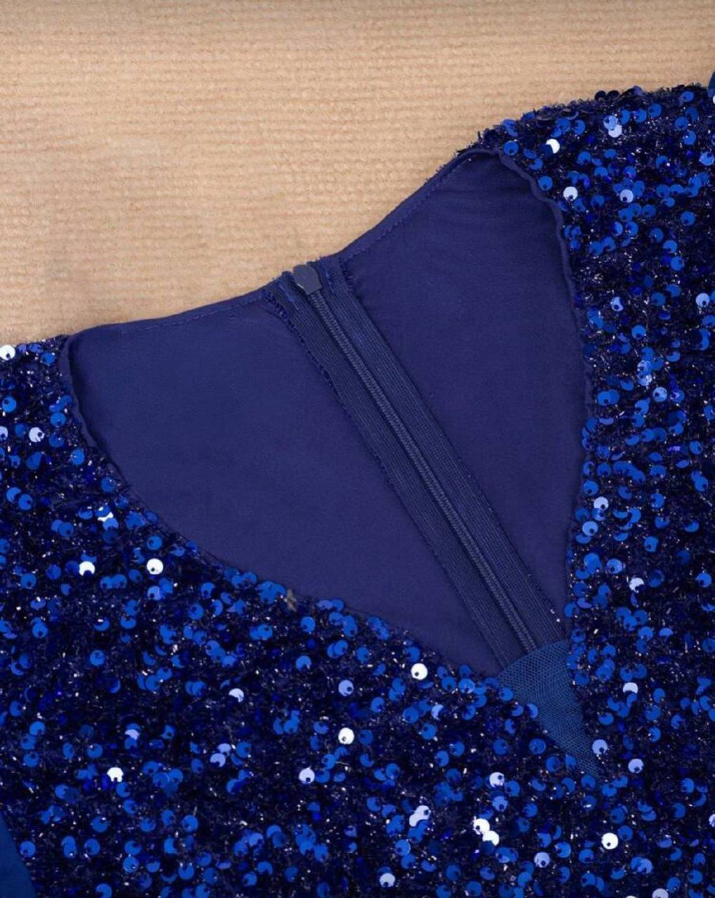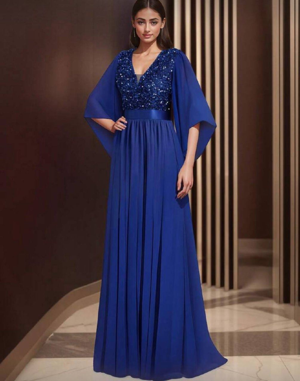 فستان سهرة رسمي من الشيفون المرقع بشكل كثيف بالترتر