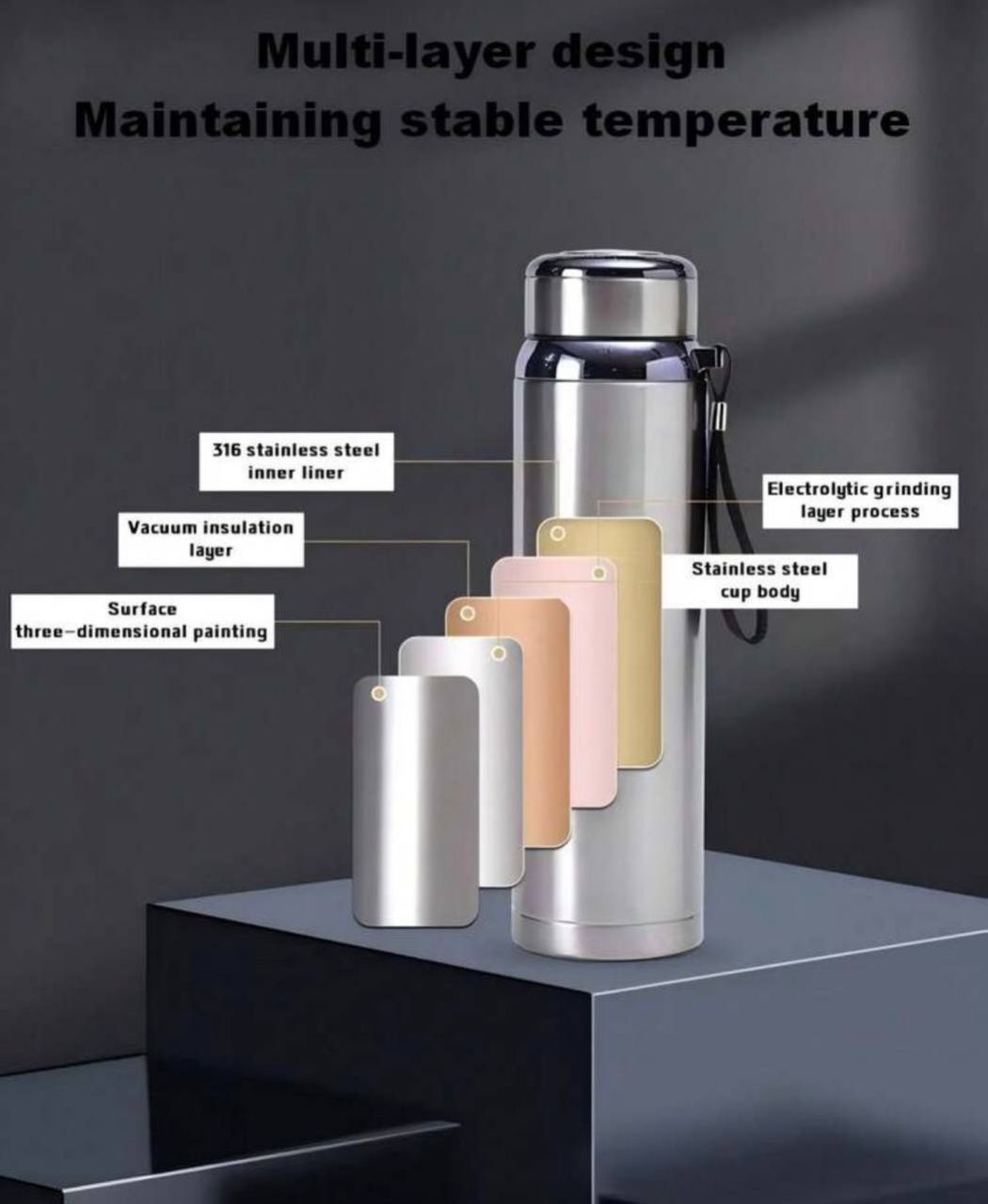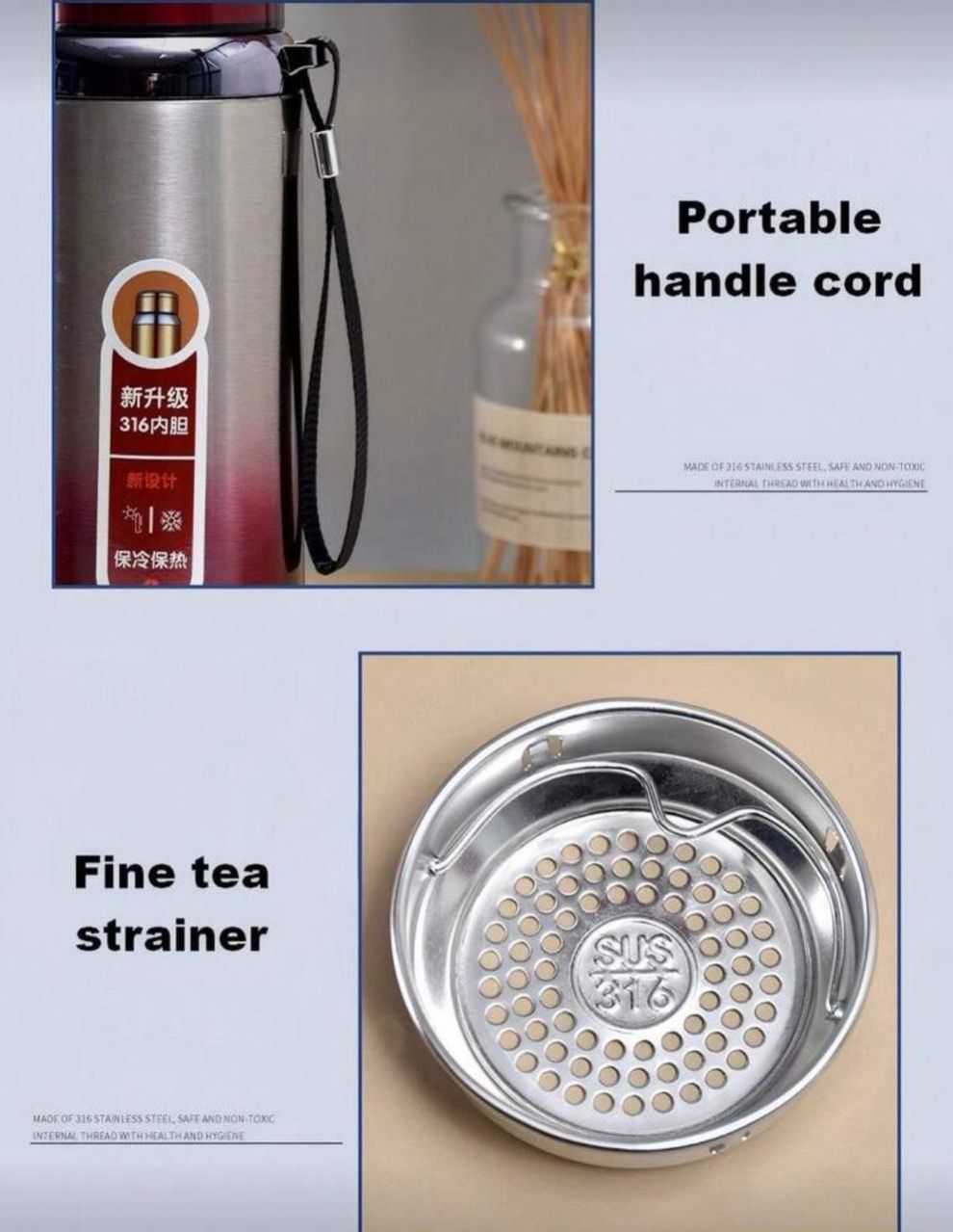 كوب شاي/قهوة عازل حراري من الفولاذ المقاوم للصدأ، سعة كبيرة، زجاجة مياه محمولة، سعة كبيرة، محمول للسفر، عازل مزدوج الجدران من الفولاذ المقاوم للصدأ، كوب قهوة، كوب شاي، زجاجة مياه باردة وساخنة، كوب عازل محكم الإغلاق، كوب شاي مع منقي من الفولاذ المقاوم للصدأ، سعة كبيرة + تصميم حزام حمل، تصميم مضاد للانزلاق للسيارة، مناسب لموسم التخرج، العطلات، لوازم المدرسة، موسم الزفاف، منتجات الصيف للخارج، العودة إلى المدرسة، مناسب للتخييم والسفر الخارجي