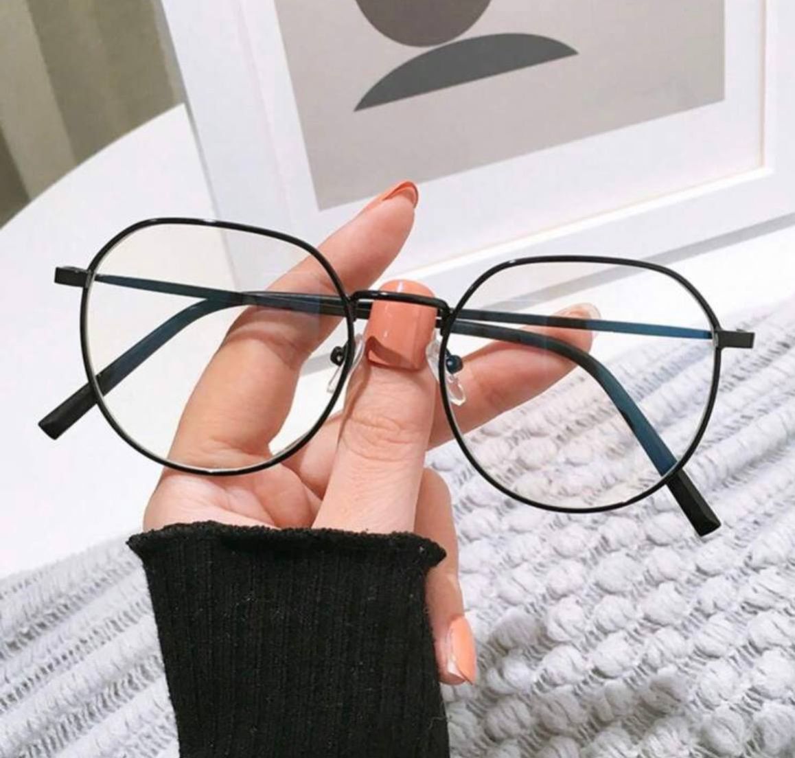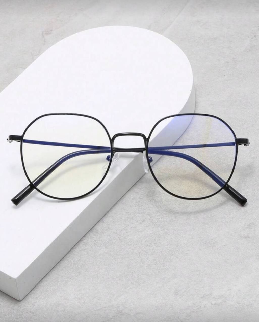 0 Review Of Product نظارة إطار معدني بيضاوي زجاج سادة ديكوري، طراز شارع رجعي للرجال والنساء