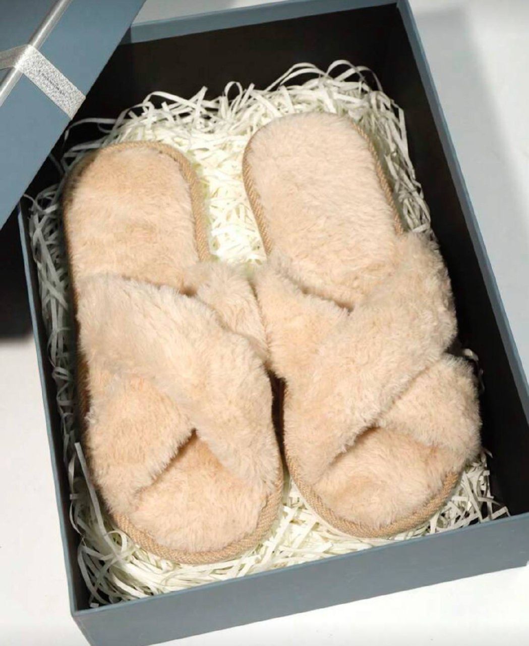 0 Review Of Product نعال داخلية نسائية موضة الخريف/الشتاء بلون بني فاتح، ذات حزام متقاطع فرو ناعم، وأرضية ناعمة مريحة وصامتة للاستخدام في غرفة النوم