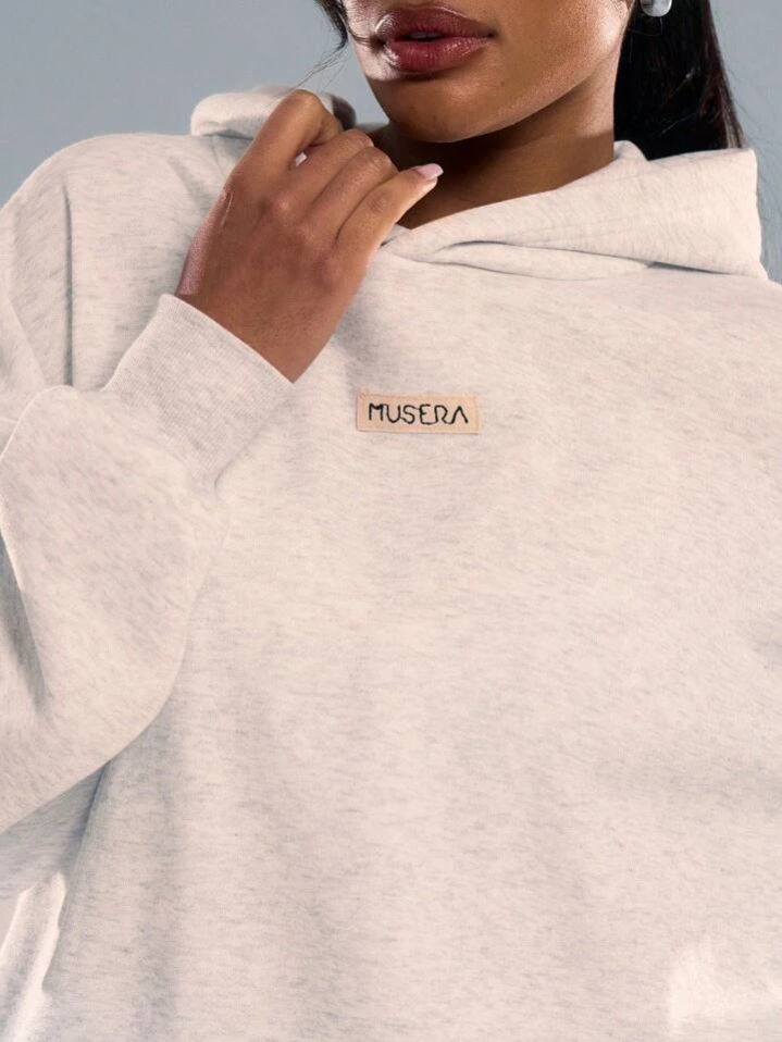 هودي واسع مطرز بشعار MUSERA، سويت شيرت مريح، مناسب للعودة إلى المدرسة، مناسب لفصلي الخريف والشتاء، دافئ، مناسب لعيد الميلاد، أنيق، كاجوال، يومي، مستوحى من موضة الألفية الجديدة، ملابس الشارع، خزانة ملابس أساسية، رمادي