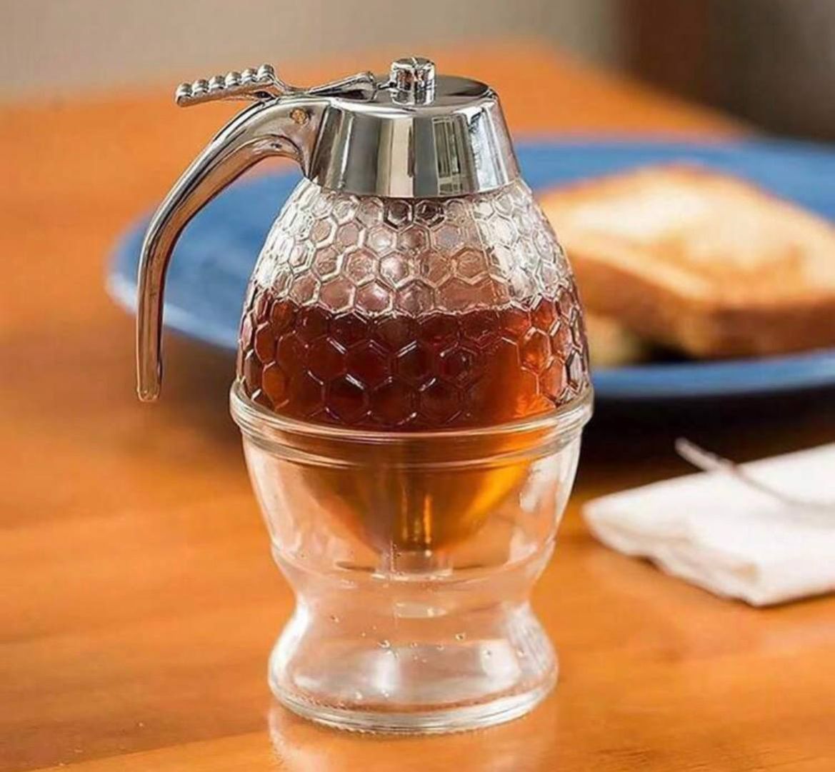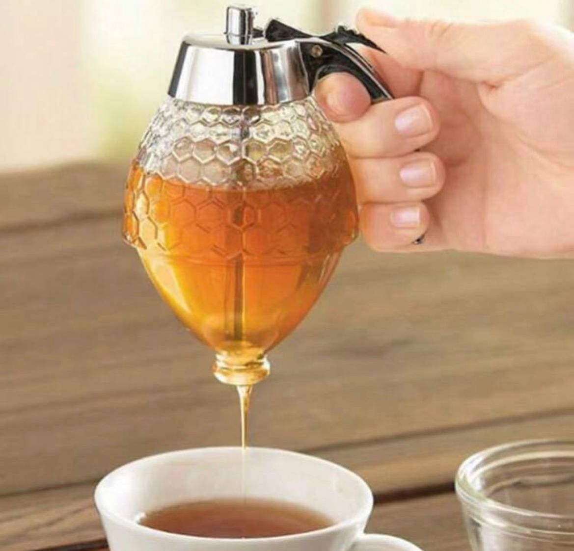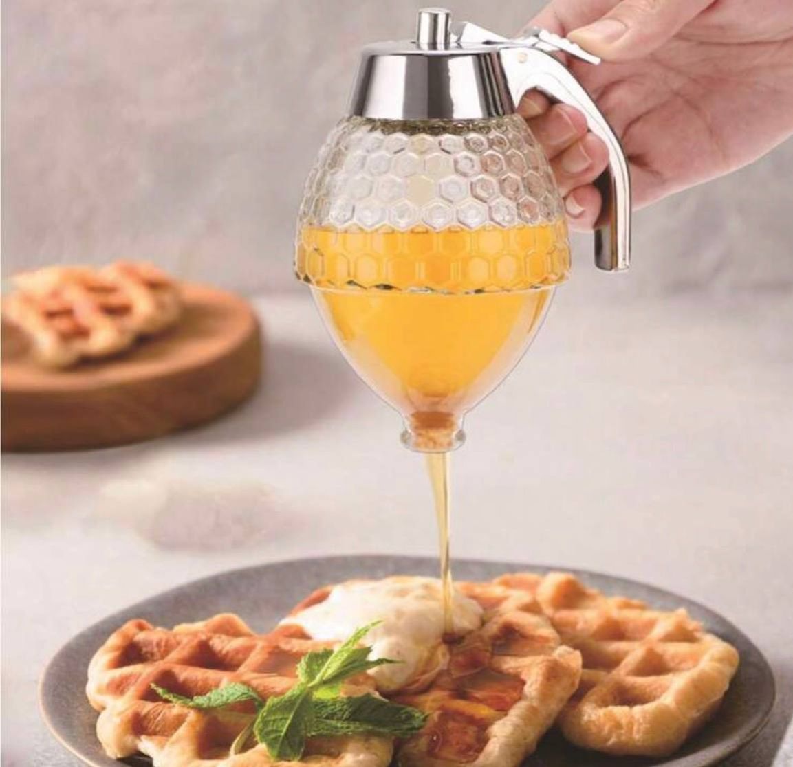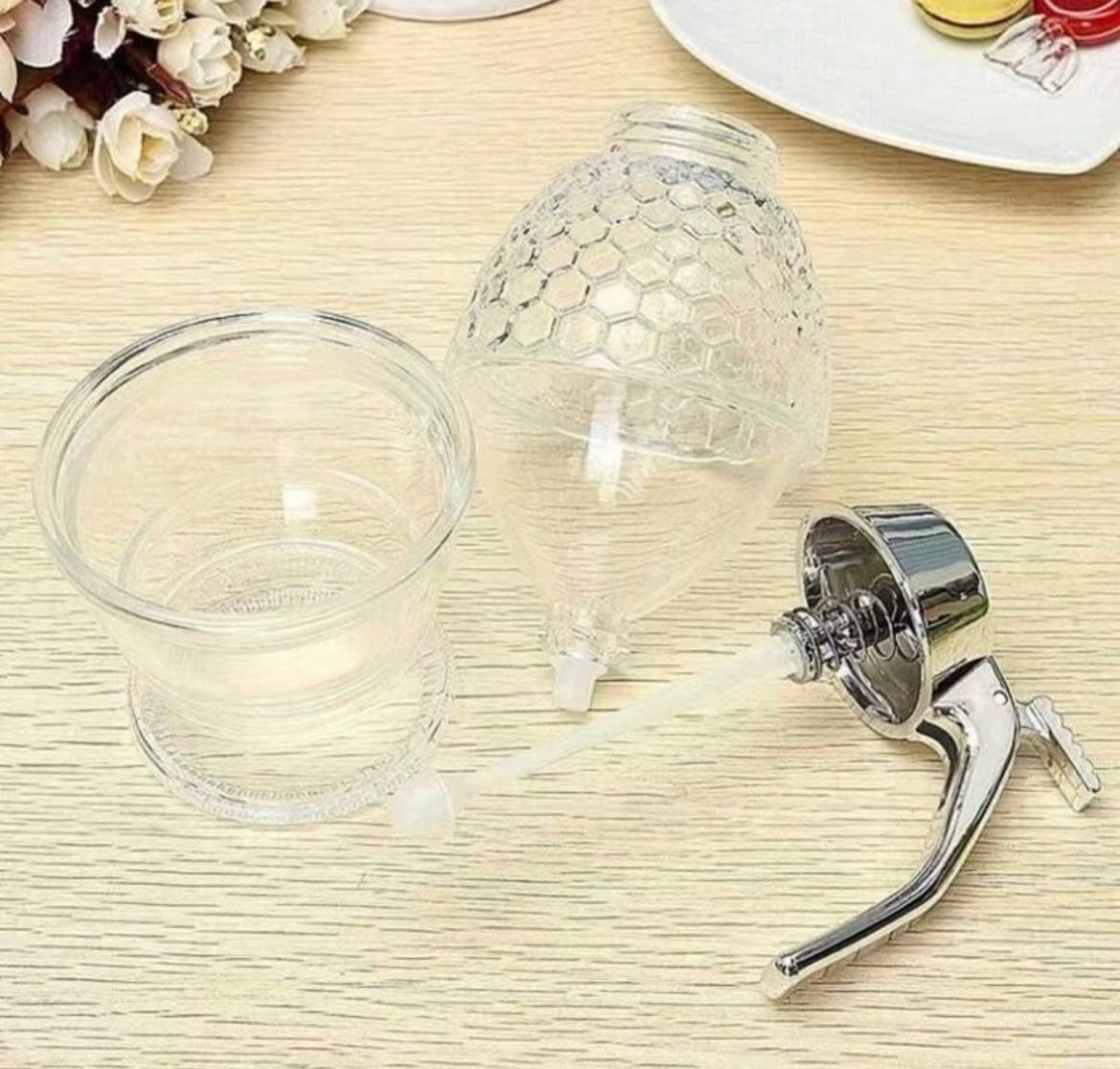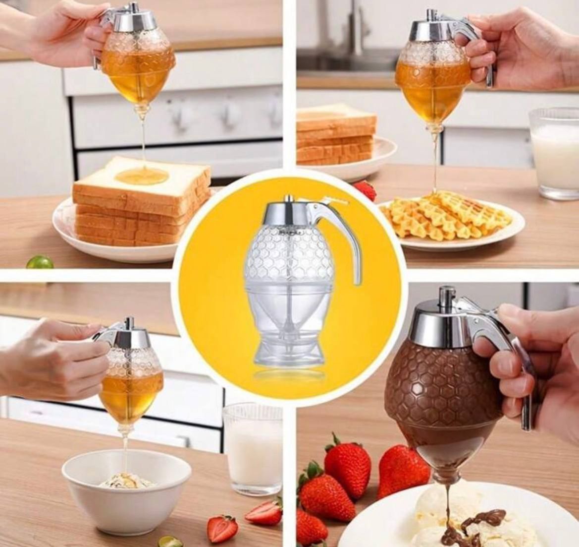 وعاء عسل بضغط الزر، زجاجة ضغط مغلقة بالبلاستيك، موزع تخزين بشكل قمع، موزع ضغط