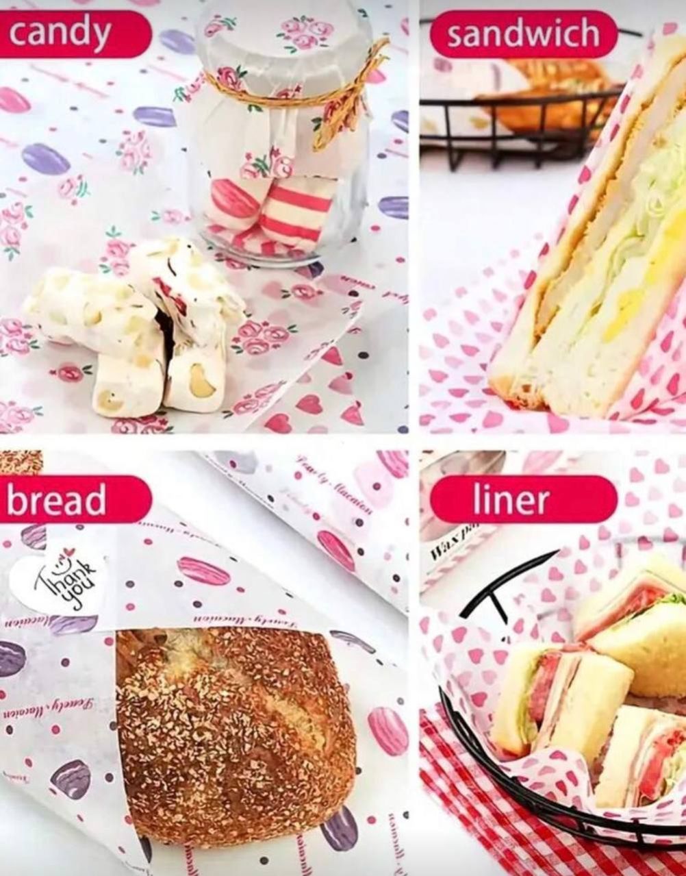 1 طقم (45 قطعة) ورق مقاوم للزيت، ورق خبز، مستخدم لتغليف السندويشات والبرغر، أدوات الخبز، ورق تغليف بشكل قلب مزين بنقوش الورود لعيد الحب، أساسيات المطبخ، مناسب للتجمعات والمناسبات والاستخدام الخارجي، ورق تغليف السندويشات، بتصميم عشوائي