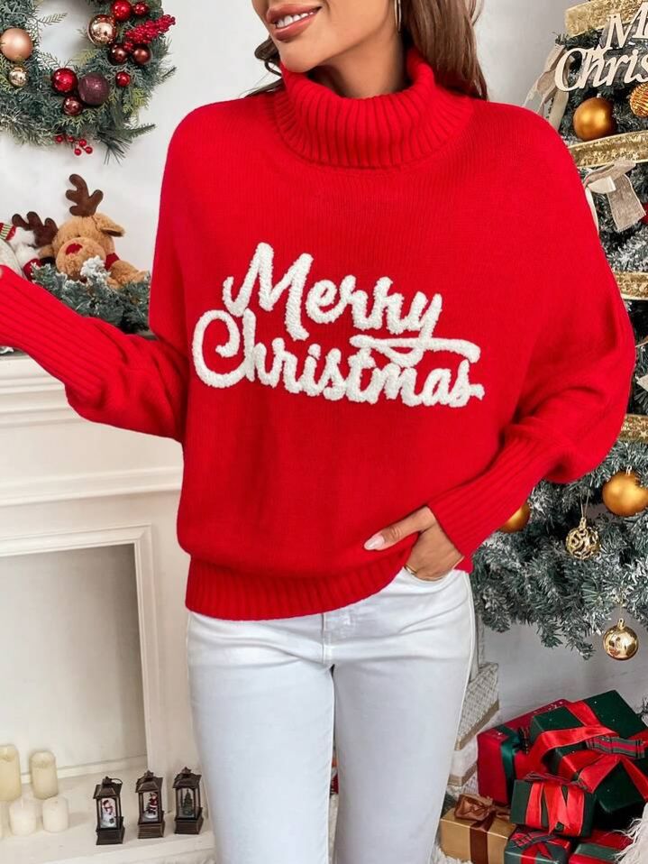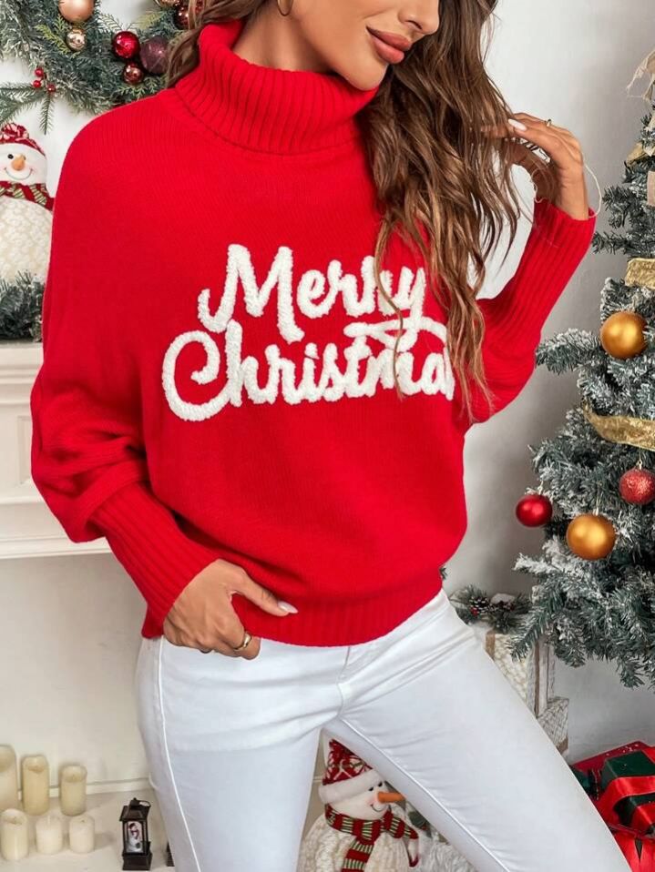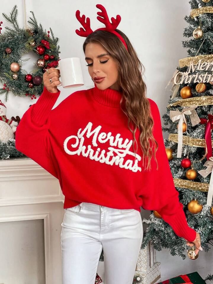 Chiquease كنزة صوفية كنزة عيد الميلاد للنساء باللون الأحمر ، ملابس لحلول العام الجديد