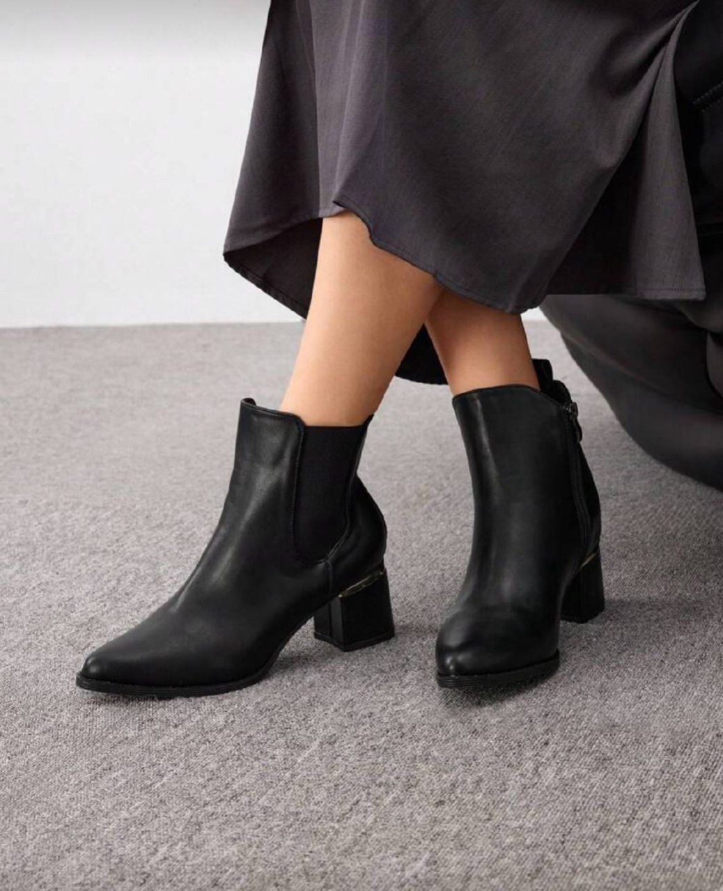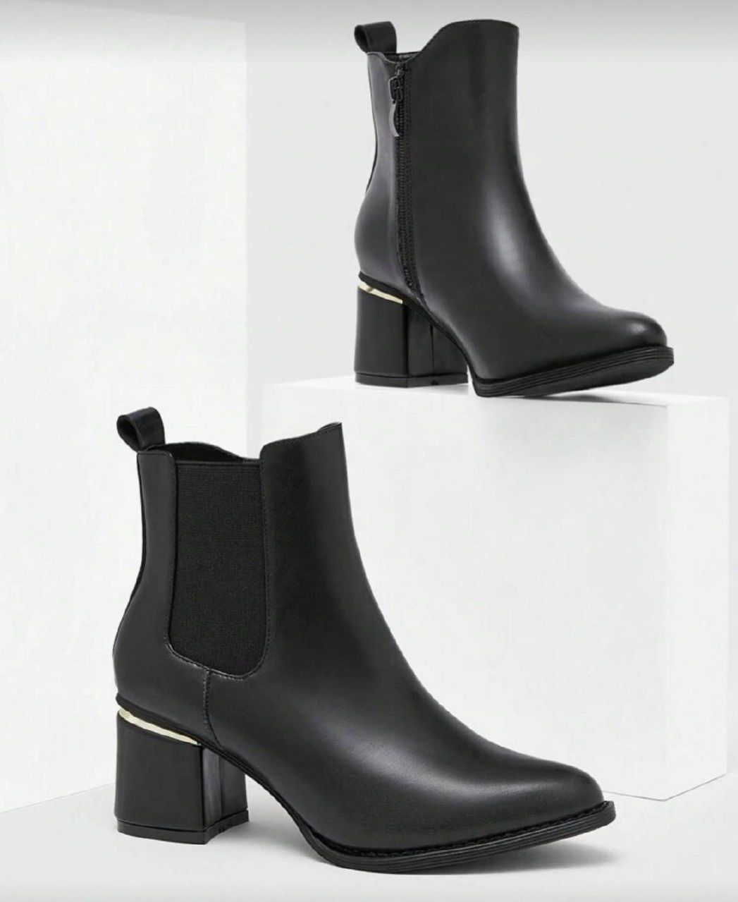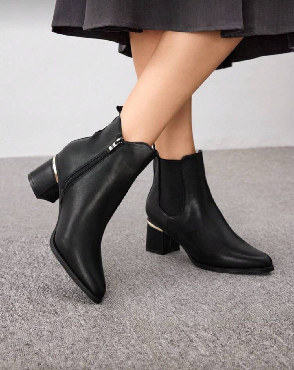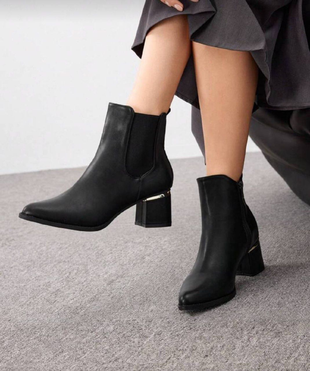 CUCCOO BIZCHIC بوت نسائية ذات رؤوس مدببة، مزينة بنقشات معدنية باللون الأسود، جزمات كاحلية متعددة الاستخدامات للربيع والخريف، بوت صيفية أنيقة للأعمال والأناقة اليومية ولإجازات الربيع والعطلات