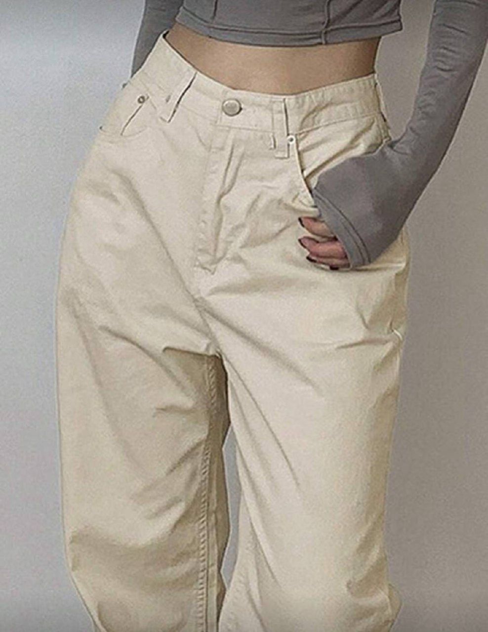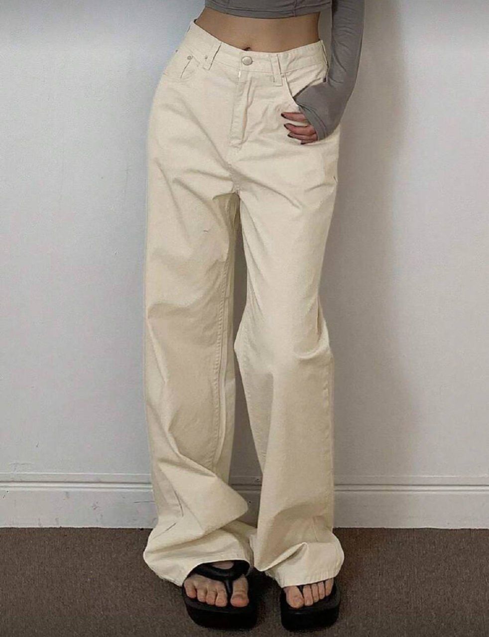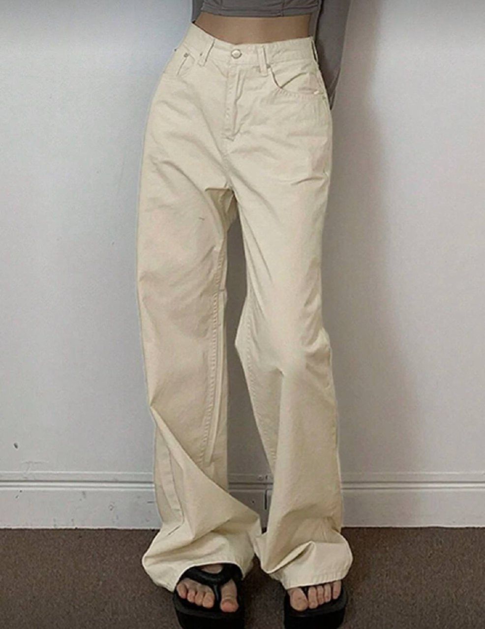 DAZY بنطلون نسائي كاجوال فضفاض بساق مستقيمة وجيب، أحادي اللون