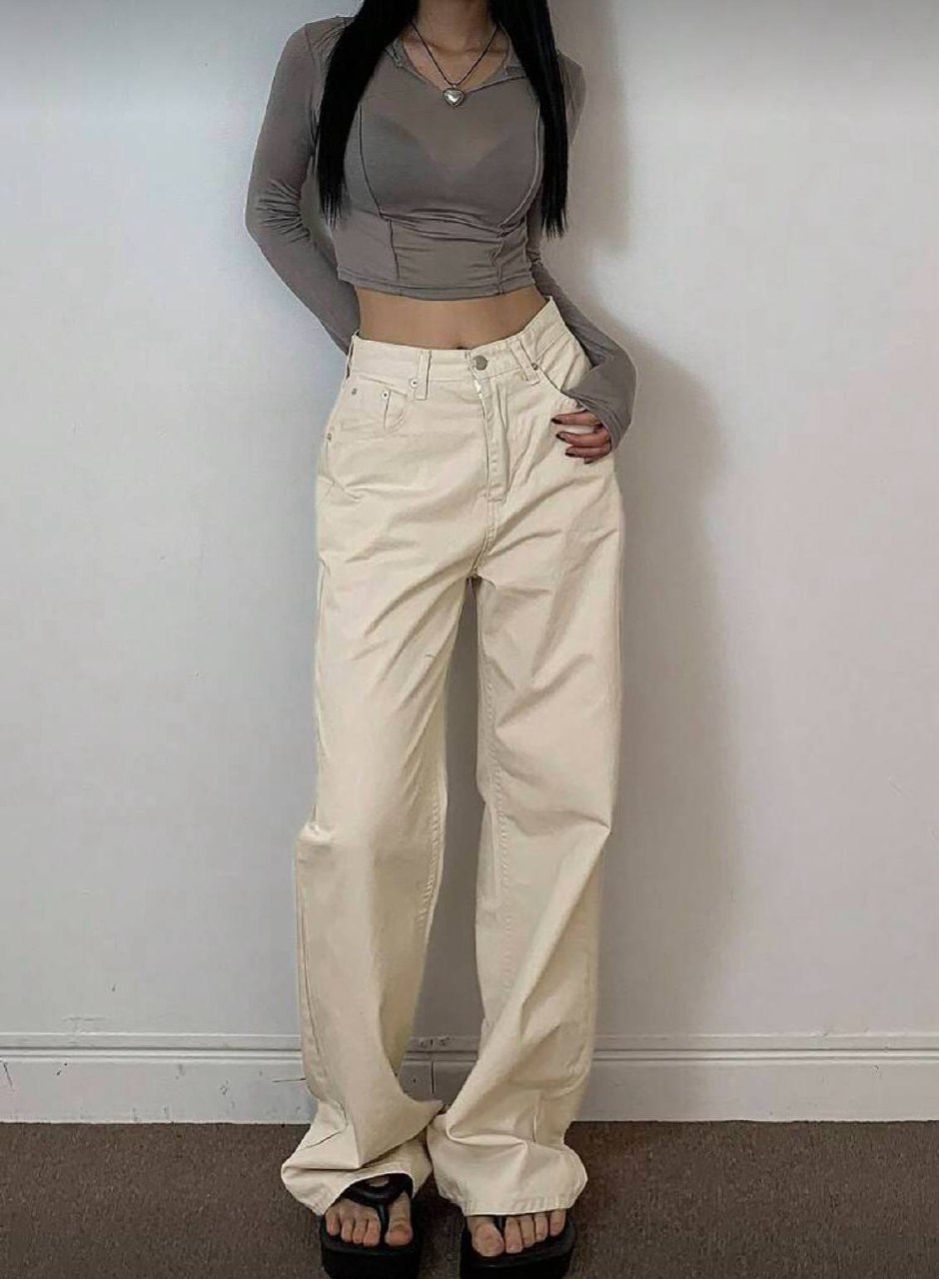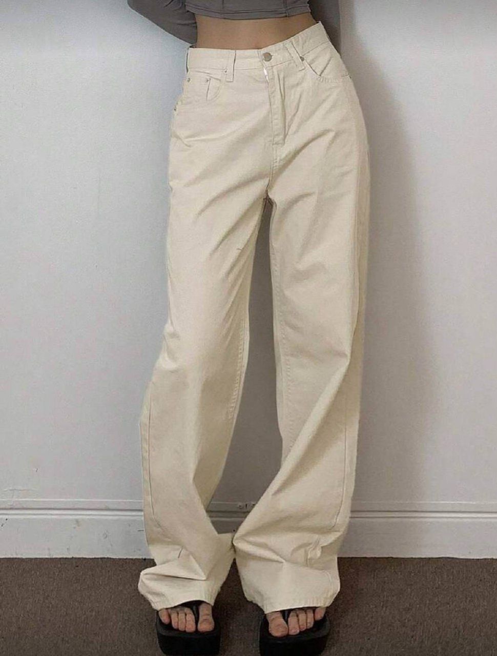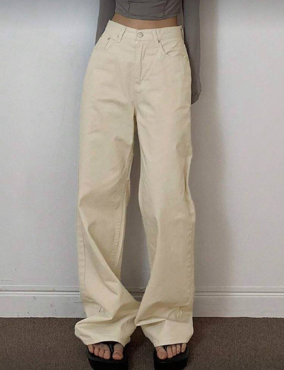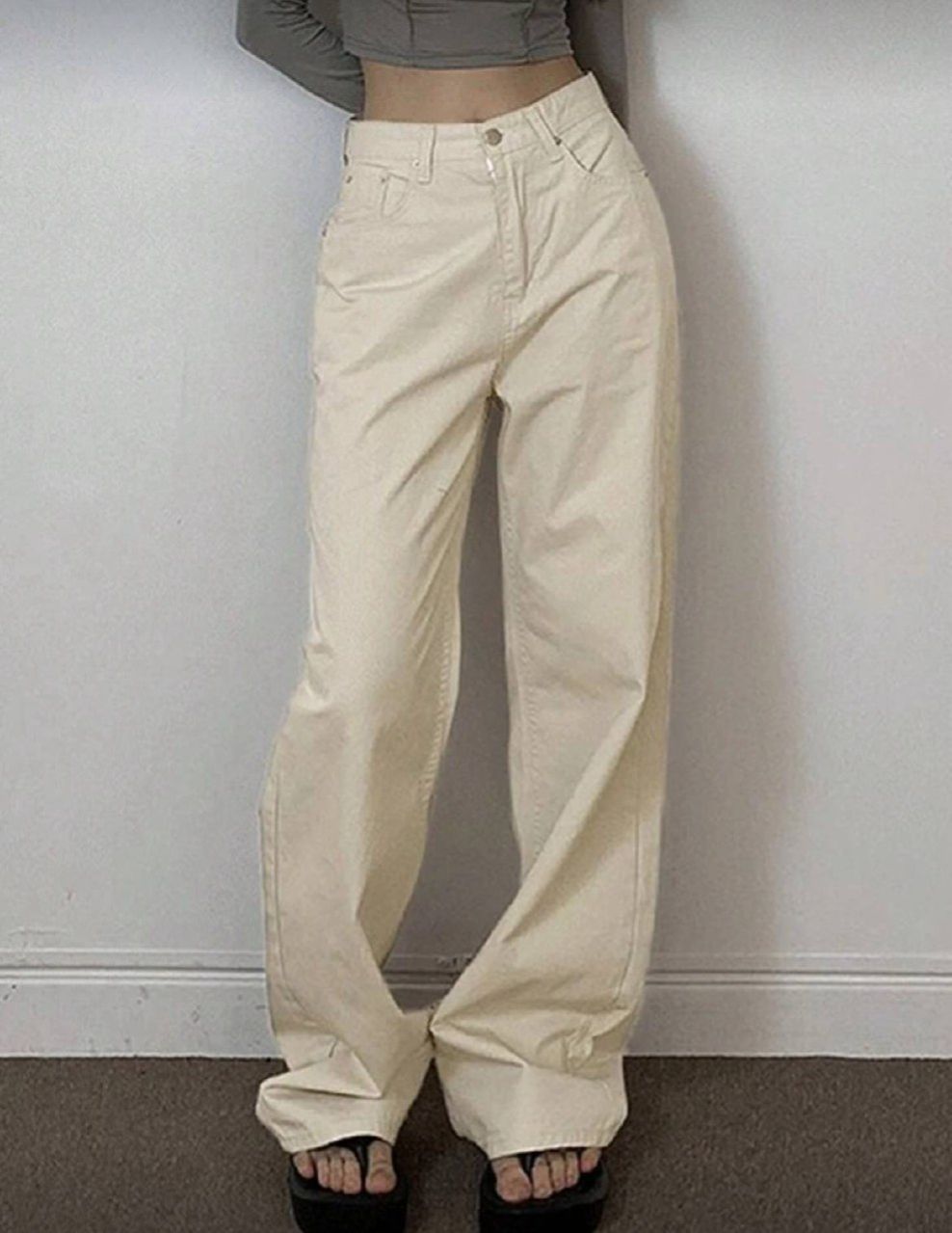 DAZY بنطلون نسائي كاجوال فضفاض بساق مستقيمة وجيب، أحادي اللون
