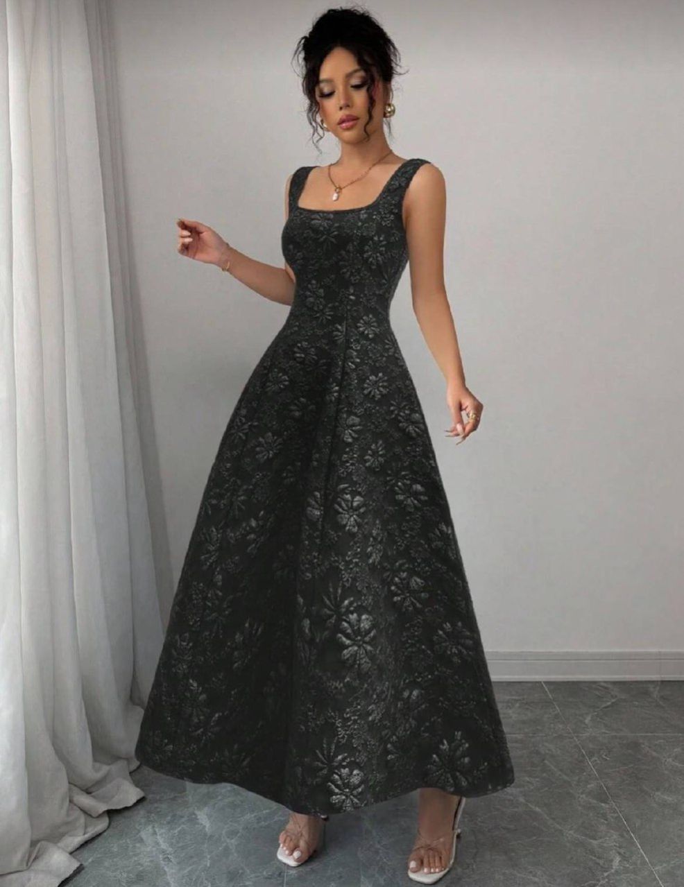 Elenzga فستان منسوج بنمط مزهر مطموس من قماش ذو شريط واسع للنساء، تصميم جديد، طول متوسط ، أناقة وأناقة للسيدة الشابة المتعددة الاستخدامات، مُلطّف وممشق الشكل