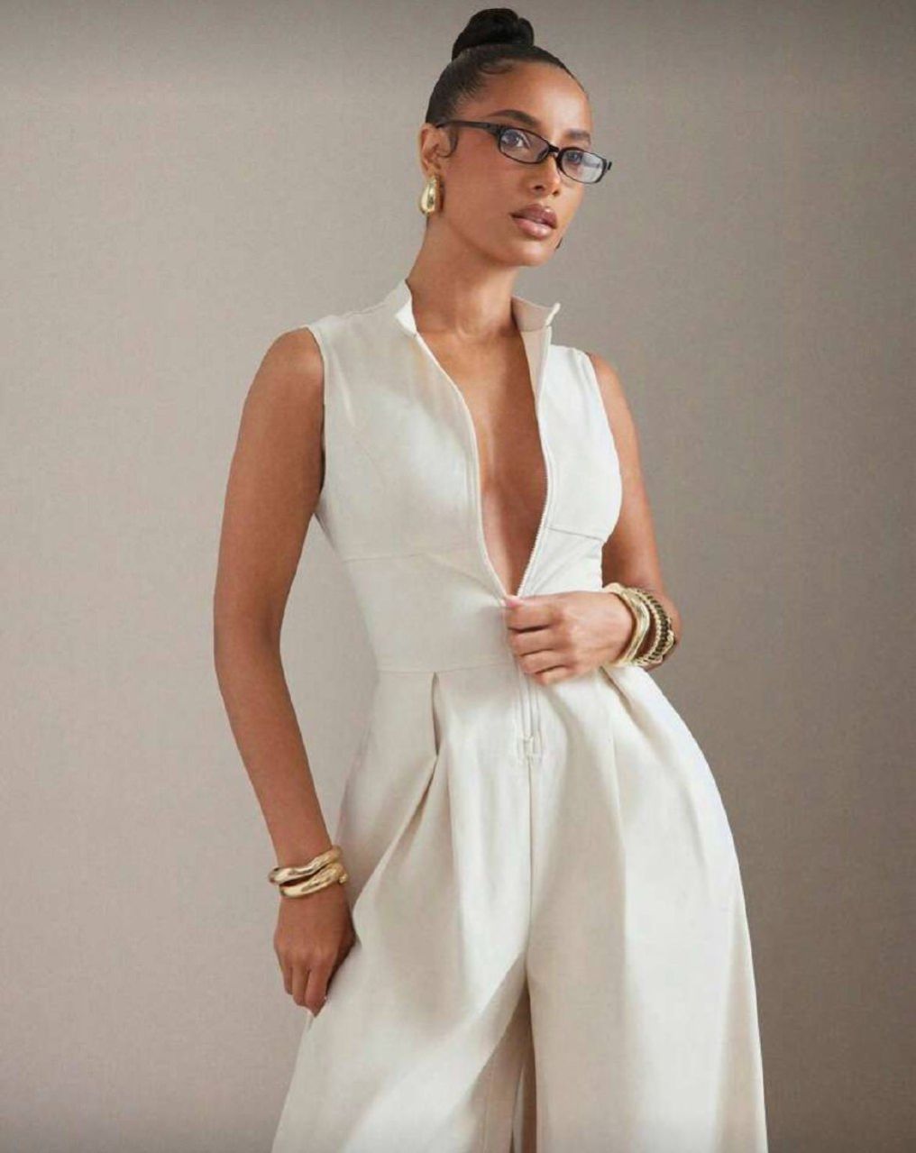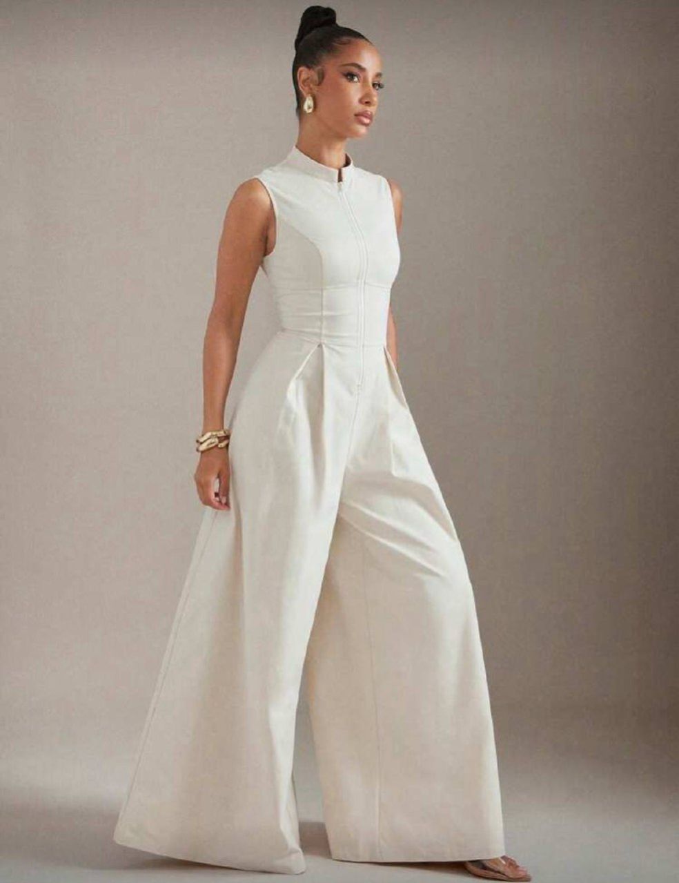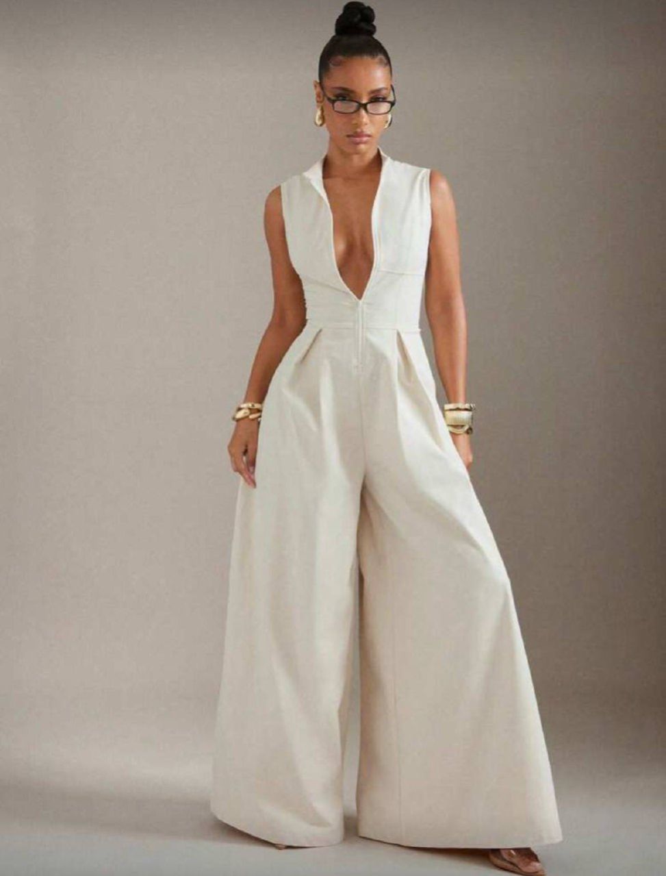 0 Review Of Product Hauture جمبسوت قفز بساق شاسعة للغاية مزودة بسوستة أمامية وبدون أكمام