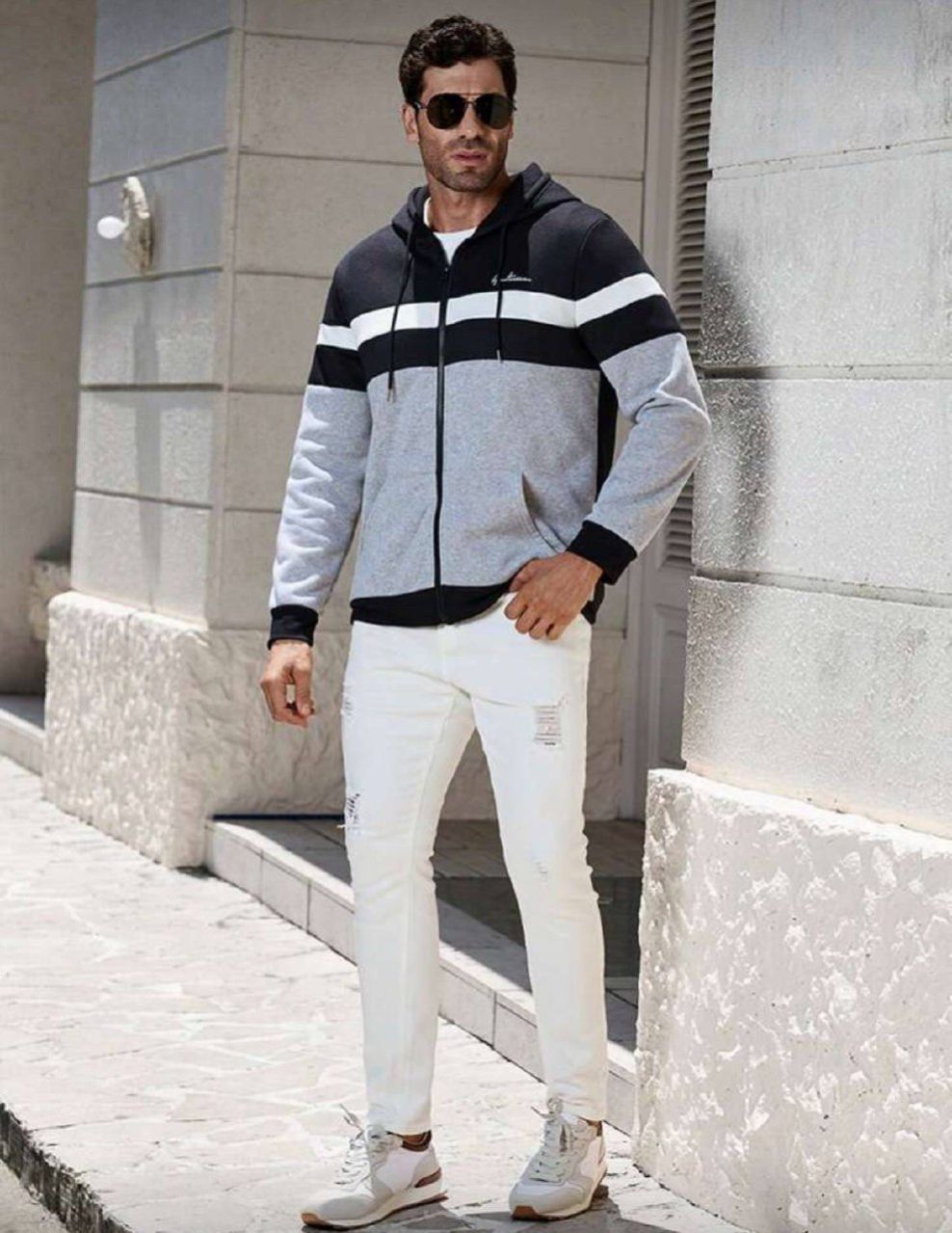 Manfinity CasualCool سترة رياضية كاجوال ذات أكمام طويلة للرجال للربيع والخريف، مطبوعة بشعار واخطوط، سحاب أمامي وقطع لونية، مناسبة للاستخدام اليومي، هدية للأصدقاء والأزواج والأحباء