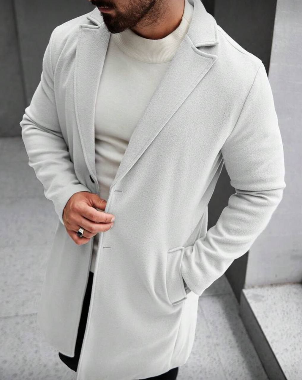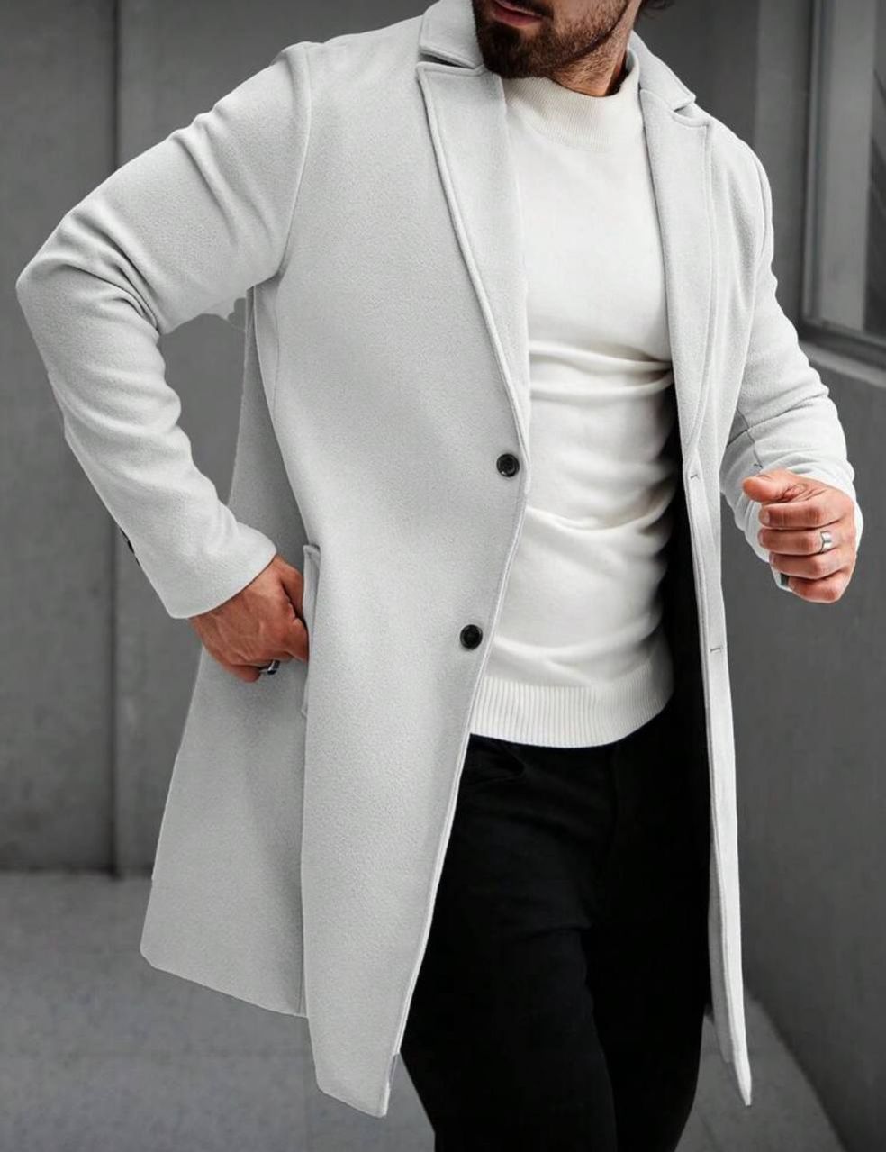 Manfinity Homme معطف طويل الأكمام بجيب وأزرار أمامية بلون واحد للرجال، معطف خروج خريفي، هدايا للأصدقاء والزوج والحبيب، شتوي