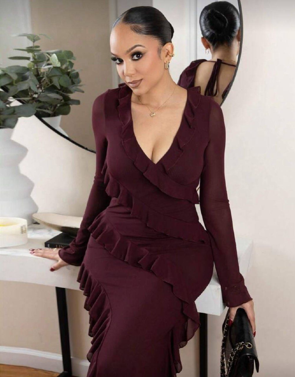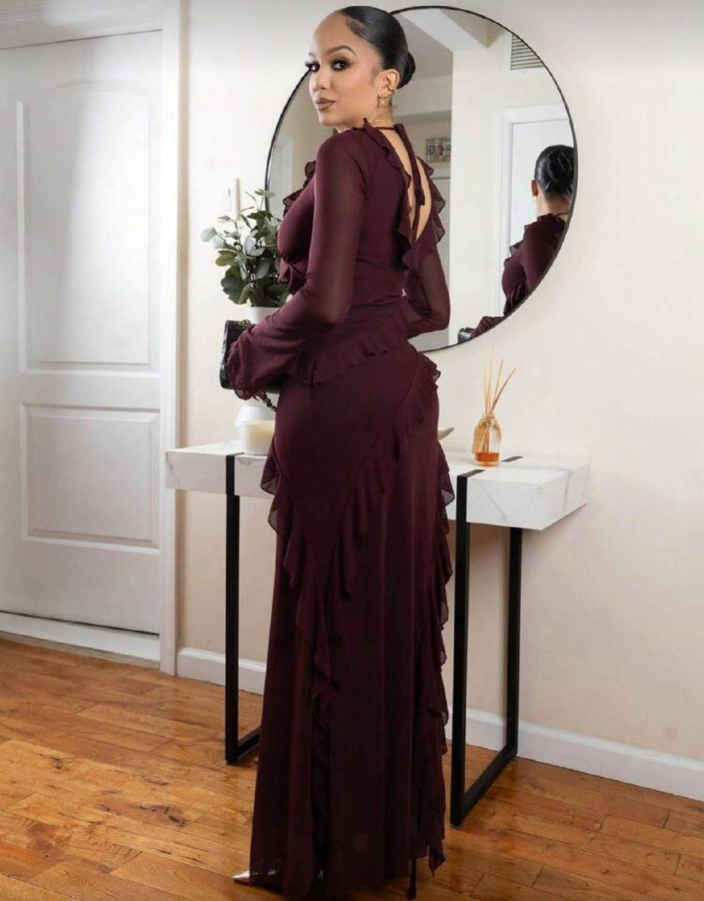 Melissa Matos فستان طويل مكسر الأكمام حتى الكاحل ذو طابع رومانسي، فساتين أنيقة للمرأة للمناسبات الرسمية مثل عيد الحب والعطلات، فساتين متوسطة الطول للصيف، فساتين كاجوال، فساتين زفاف وأعياد الميلاد، فساتين سهرة للخريف والصيف