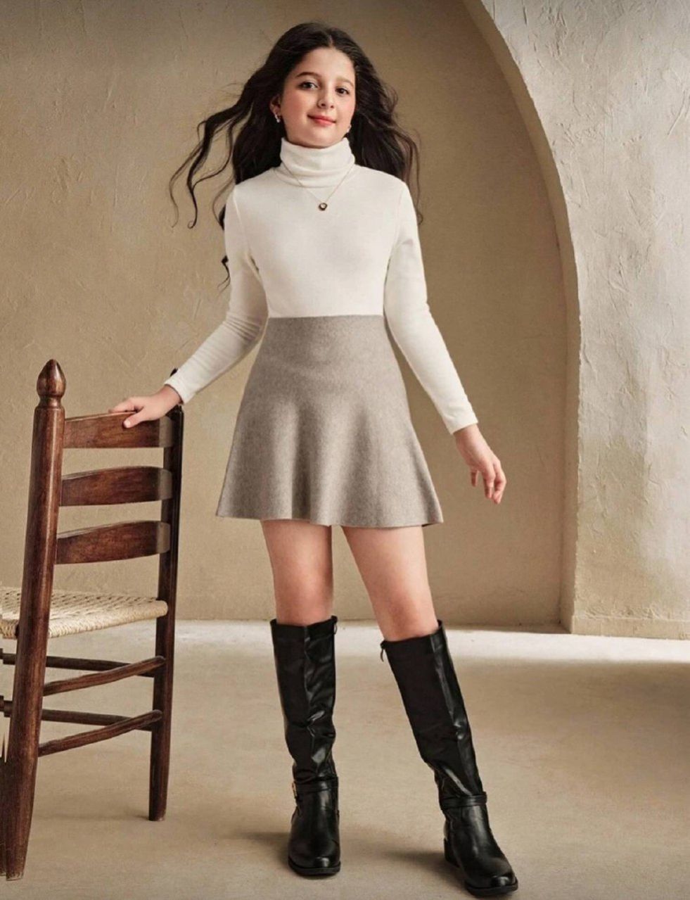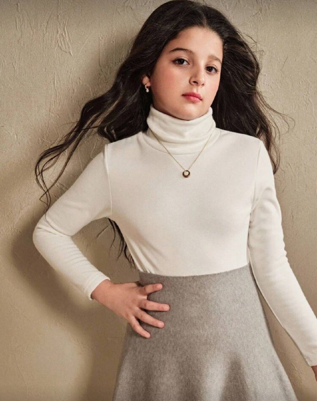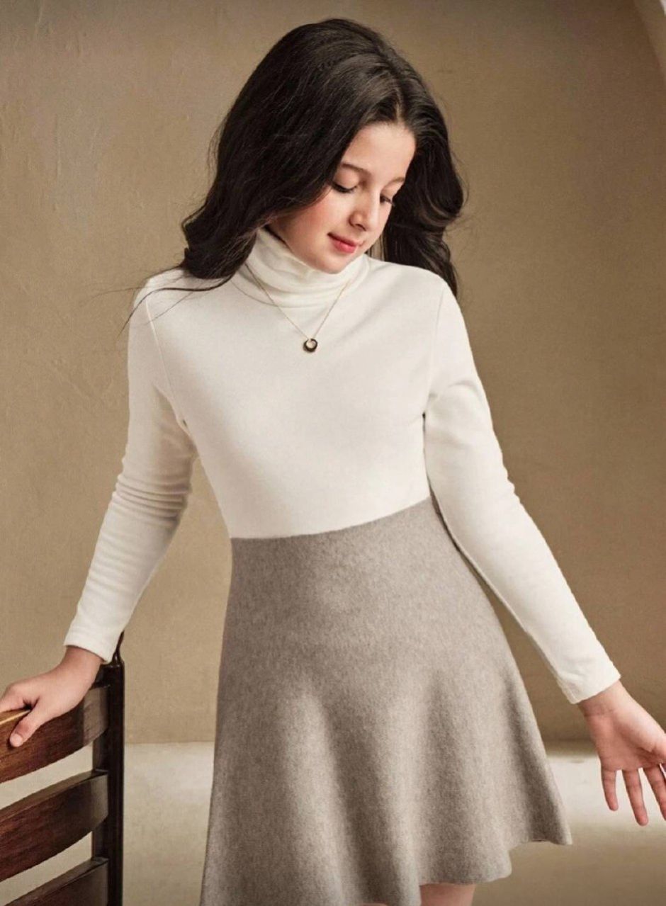 SHEIN Elladie kids تي شيرت رقبة عالية بأكمام طويلة كاجوال للفتيات المراهقات، مبطن بطبقة حرارية، متعدد الاستخدامات، مناسب للخريف والشتاء، المدرسة، السفر والارتداء اليومي