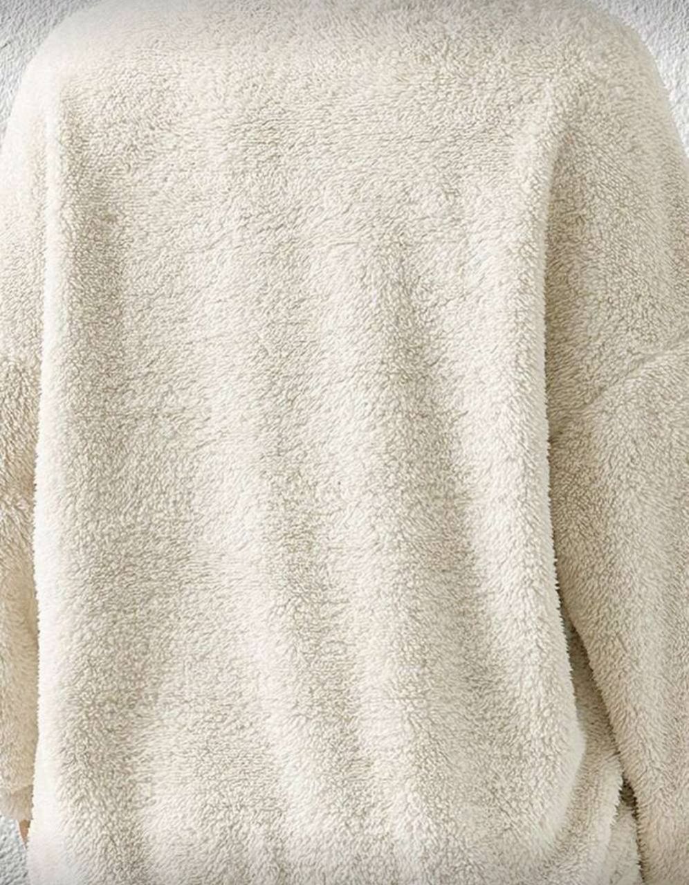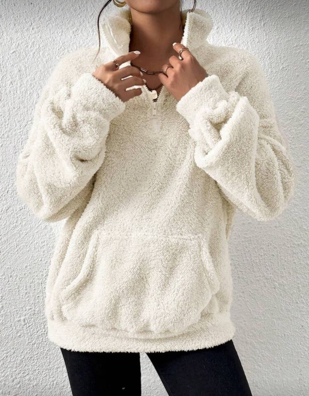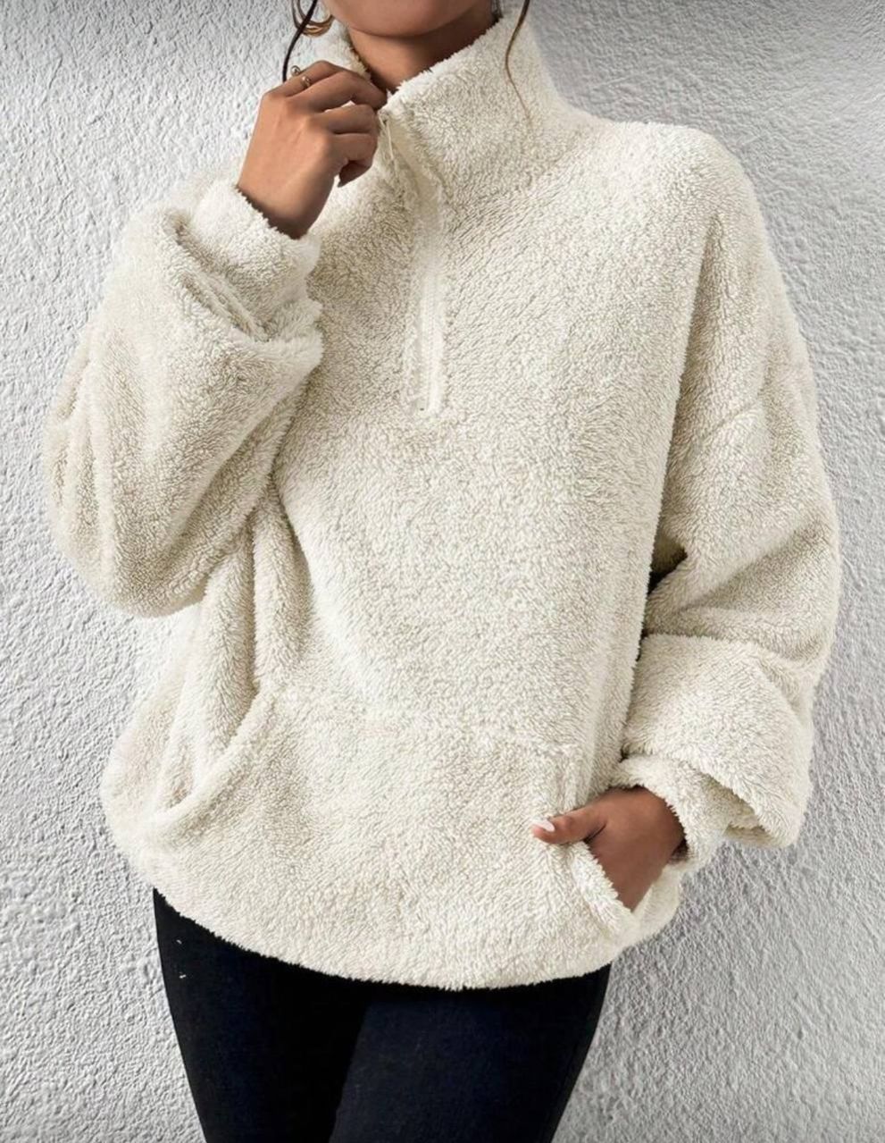 SHEIN EZwear بلوزة رياضية بياقة عالية نصف سحاب من القطيفة اللون البيج، بلوزة رياضية مريحة للخريف والشتاء، ملابس مريحة للنساء