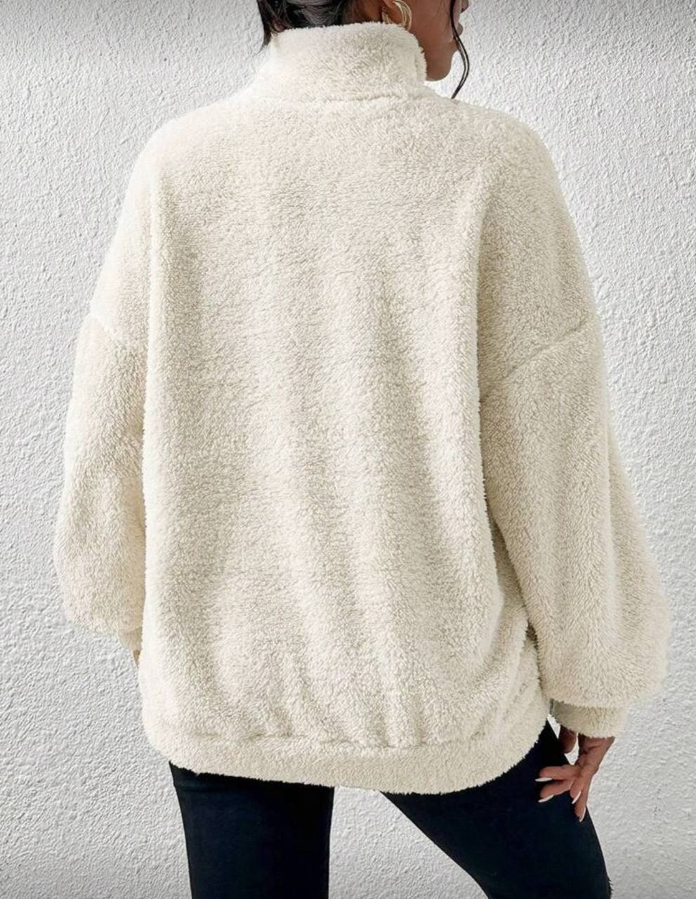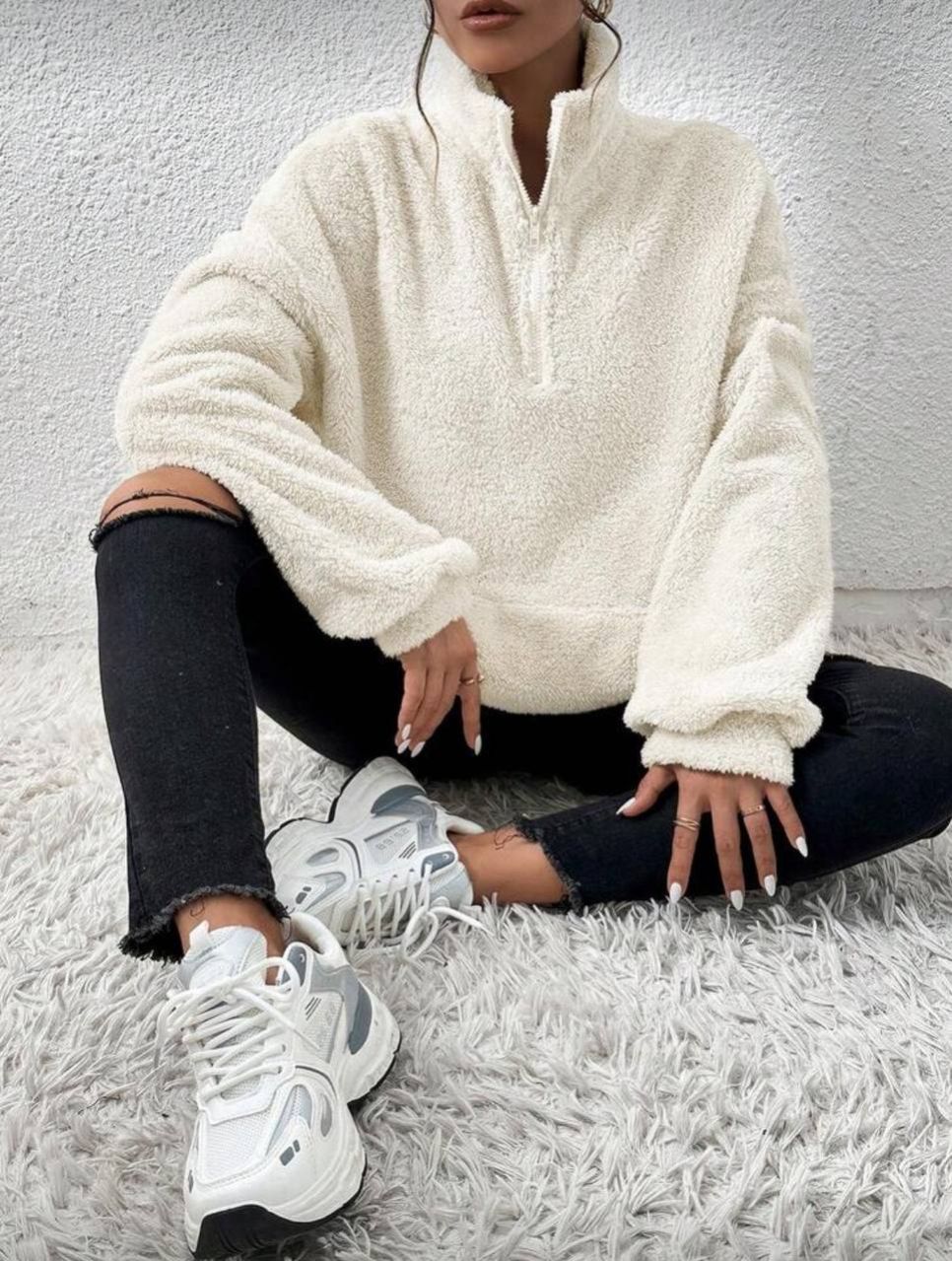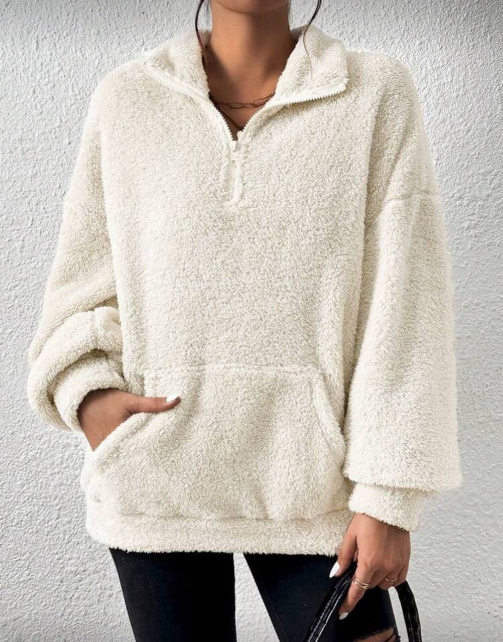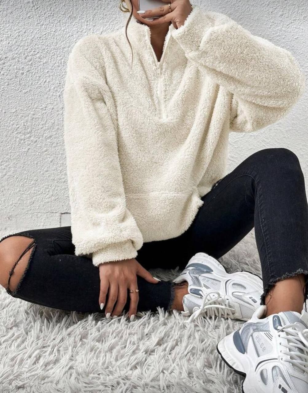 SHEIN EZwear بلوزة رياضية بياقة عالية نصف سحاب من القطيفة اللون البيج، بلوزة رياضية مريحة للخريف والشتاء، ملابس مريحة للنساء