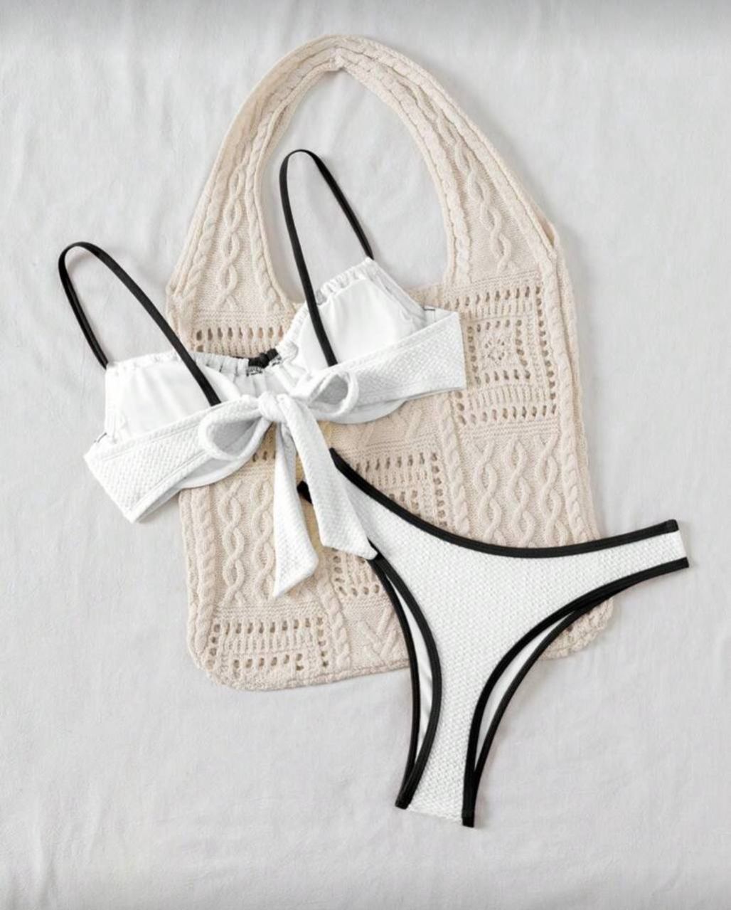 0 Review Of Product Swim Basics بدلة سباحة مجموعة نسائية ذات تصميم محايد باللون المتباين للعطلات والشاطئ