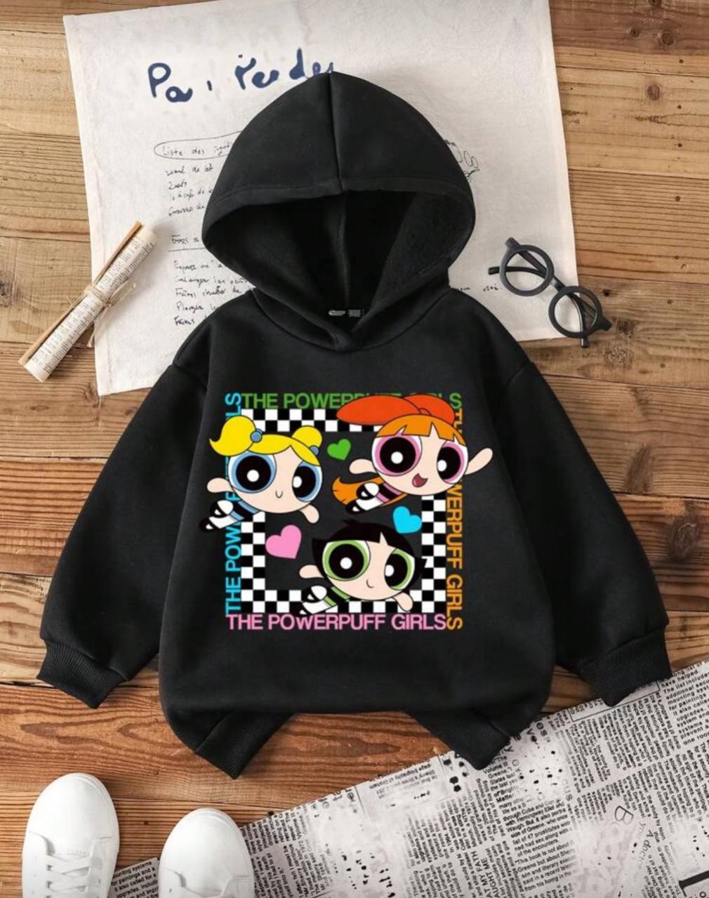 0 Review Of Product THE POWERPUFF GIRLS X SHEIN بلوزة رياضية كاجوال طويلة الأكمام مطبوعة برسومات كرتونية مع كابوشون، مناسبة للخريف/الشتاء للفتاة الشابة