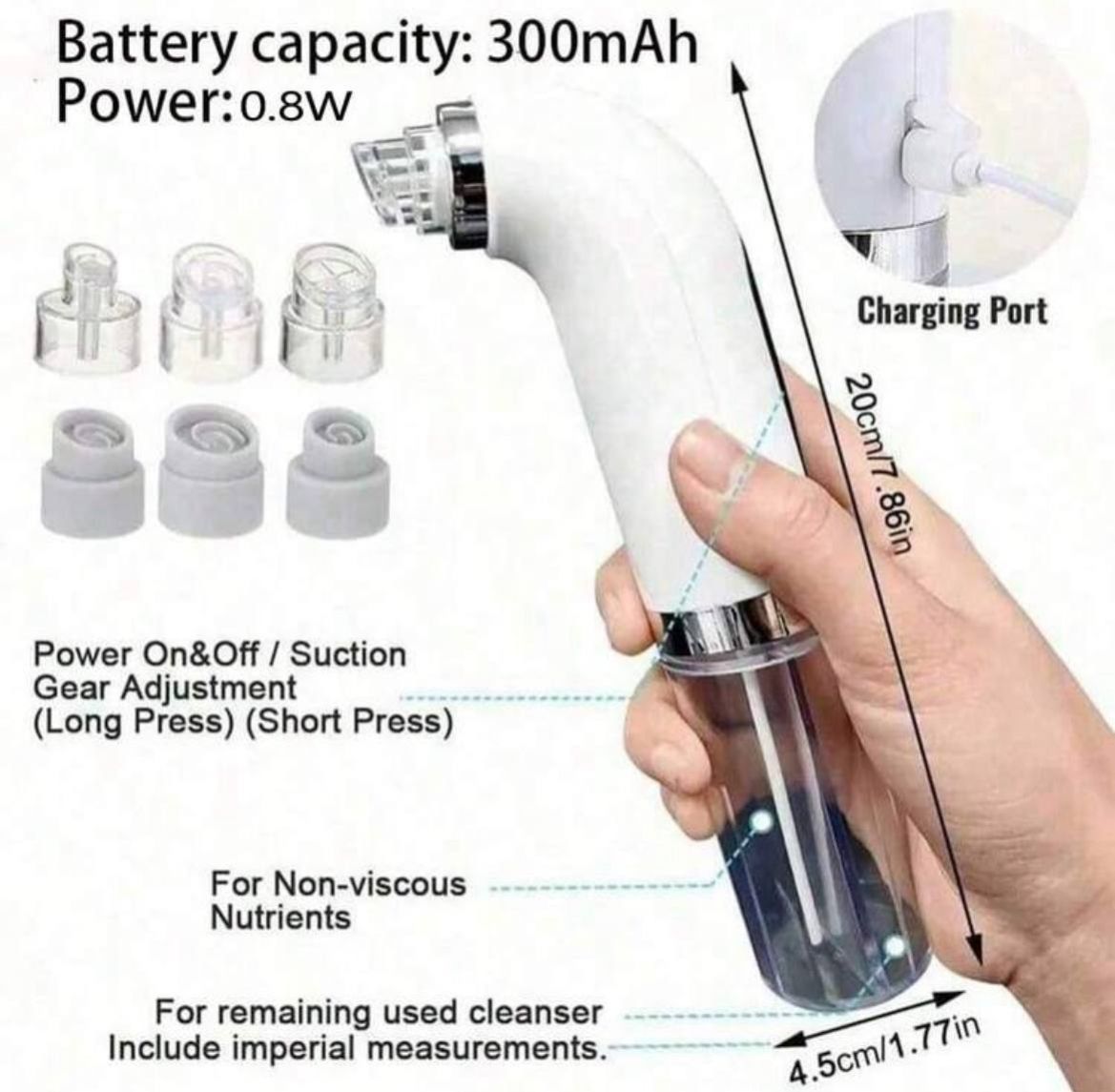 آداة إزالة الرؤوس السوداء، شفاط منافذ الوجه الكهربائي، منظف المسام، آداة تنظيف الوجه بالدورة المائية بالشحن عبر USB، سعة البطارية: 300 ملي أمبير