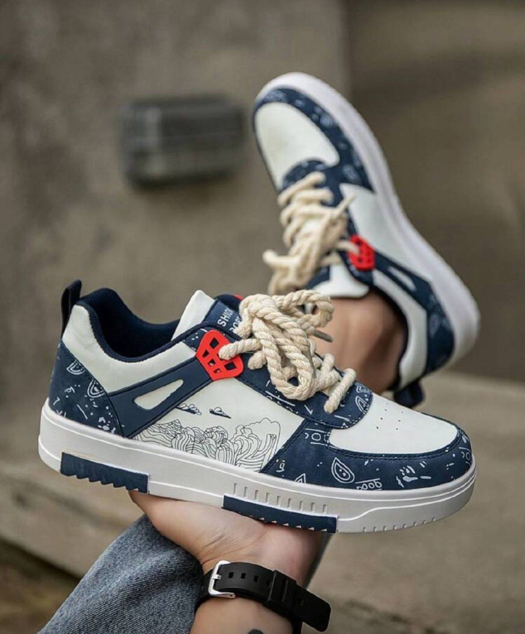 أحذية رياضية رجالية بتصميم ألوان متباينة مطبوعة ومرقعة ذات أصابع مستديرة منخفضة، أحذية كاجوال خارجية مخصصة للأزواج مناسبة لجميع المواسم