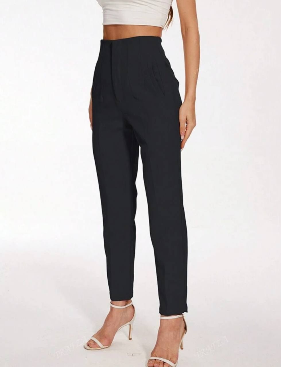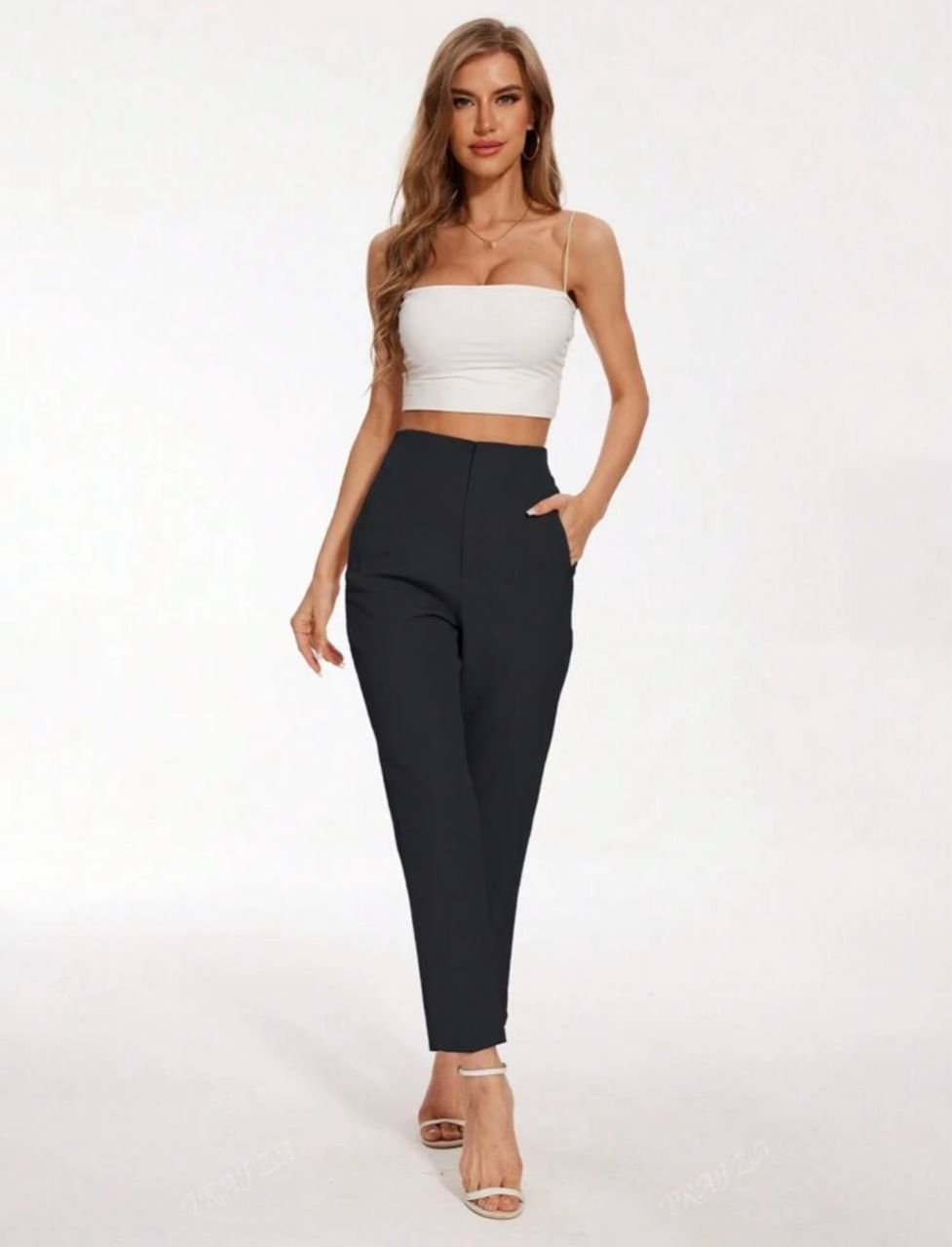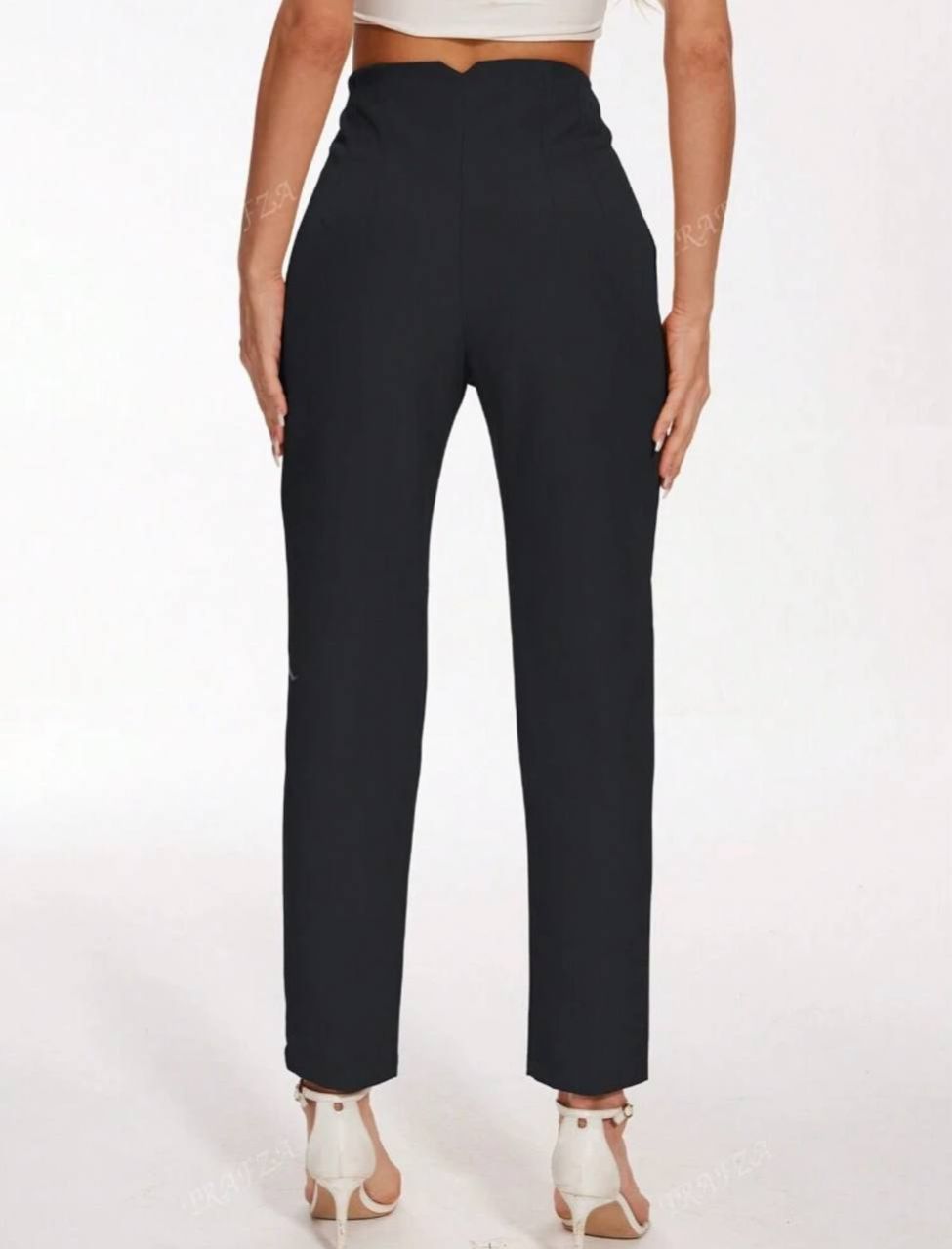 بنطلون نسائي رفيع ذو جيوب جانبية مطوية أنيق للتنقلات