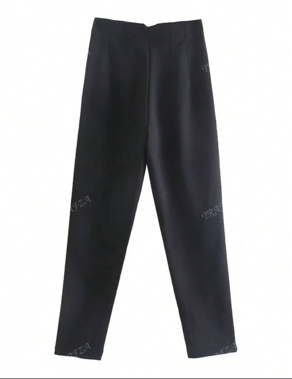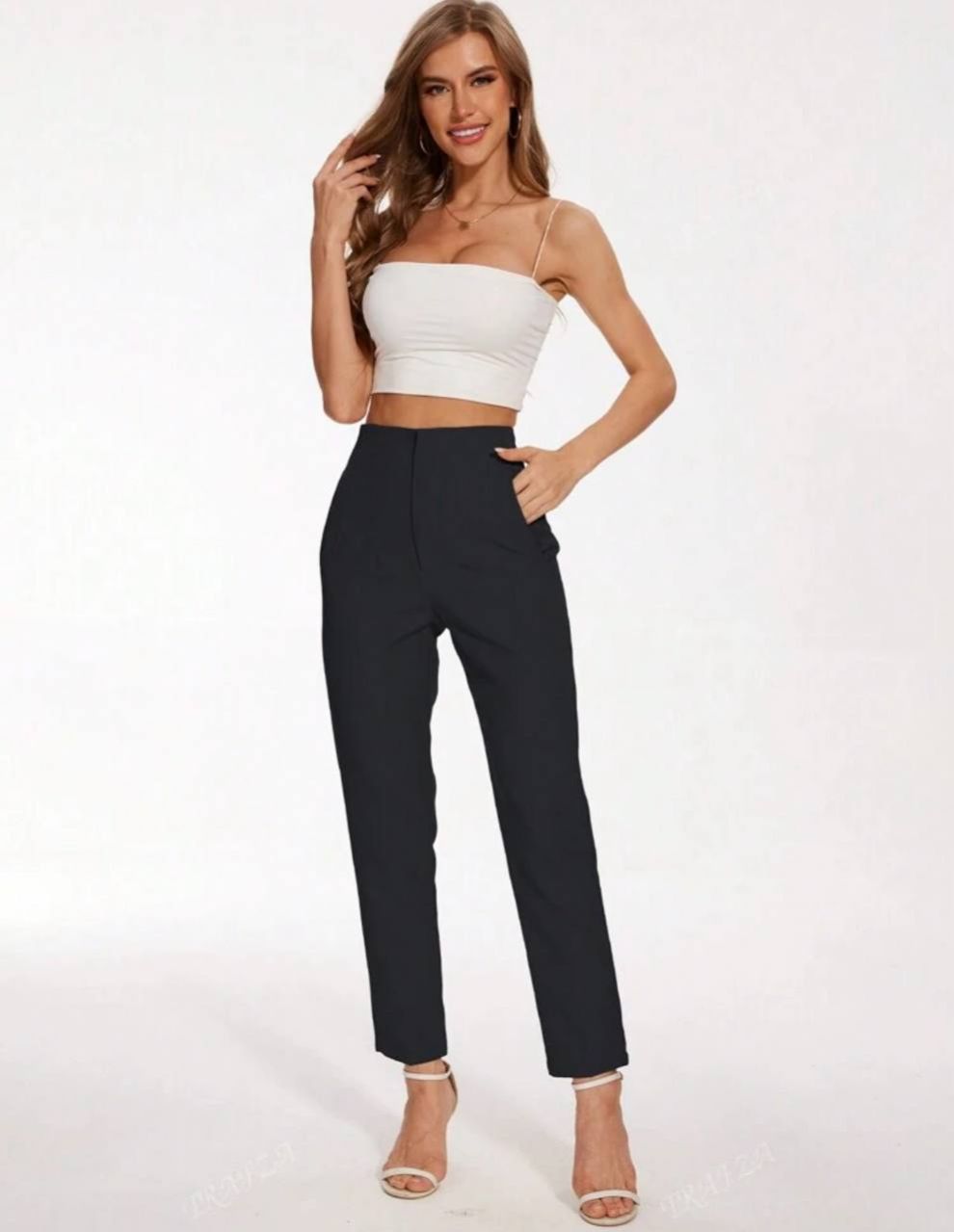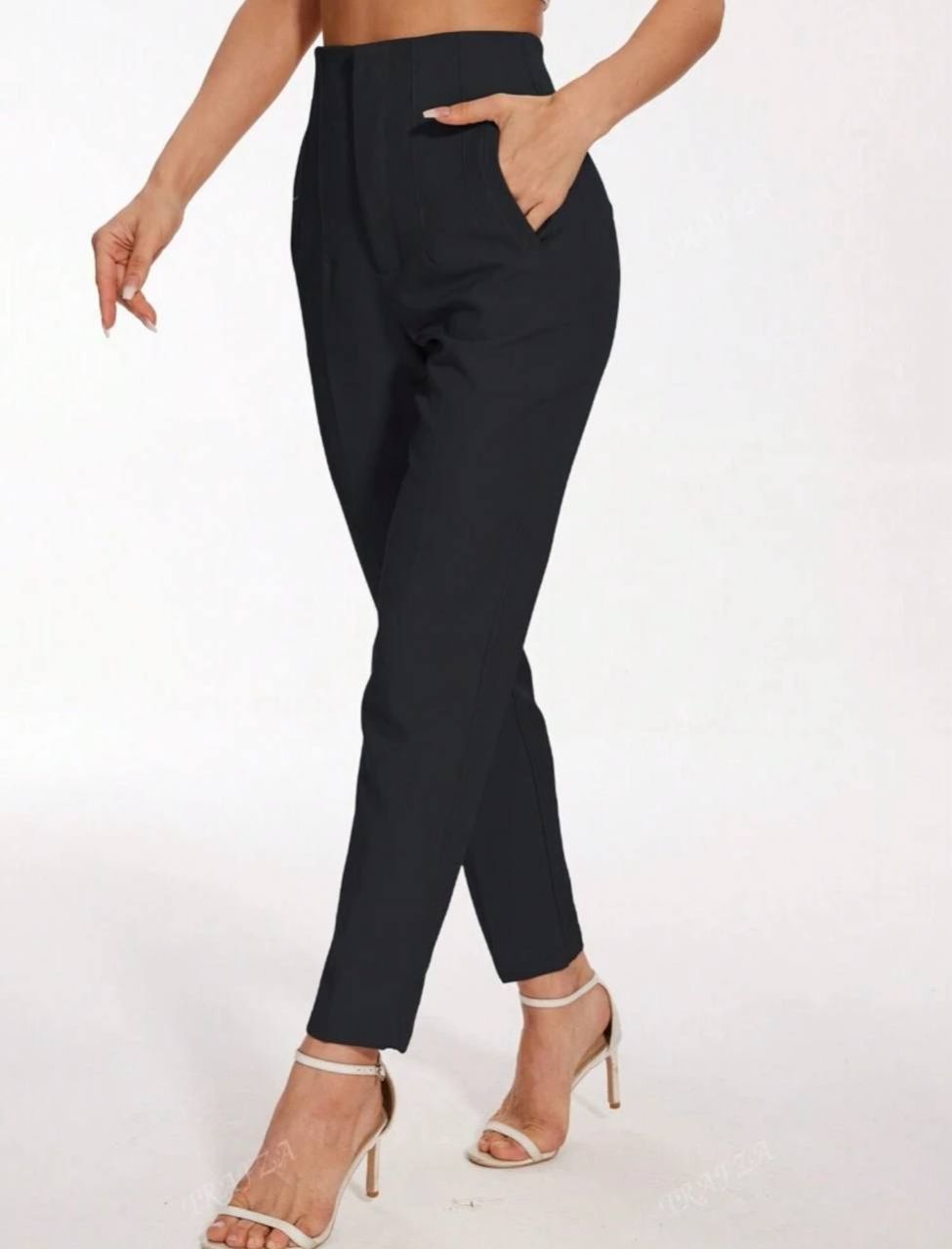 بنطلون نسائي رفيع ذو جيوب جانبية مطوية أنيق للتنقلات