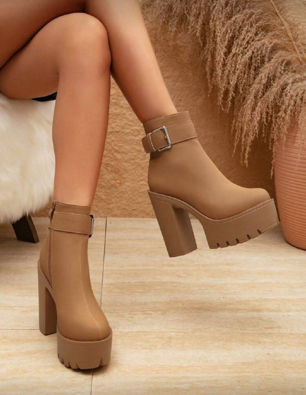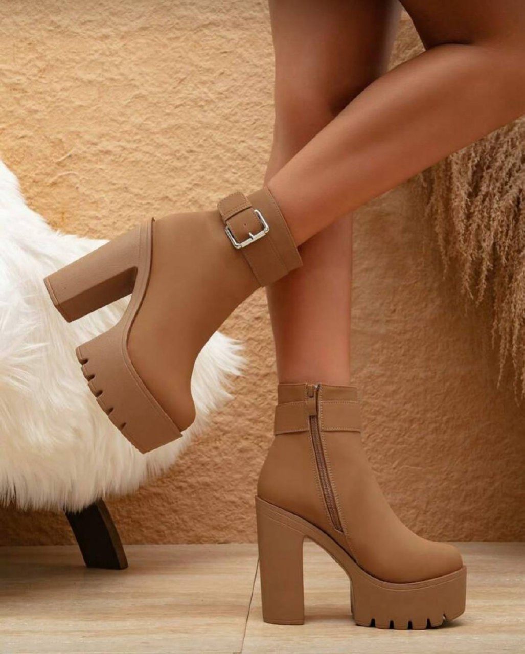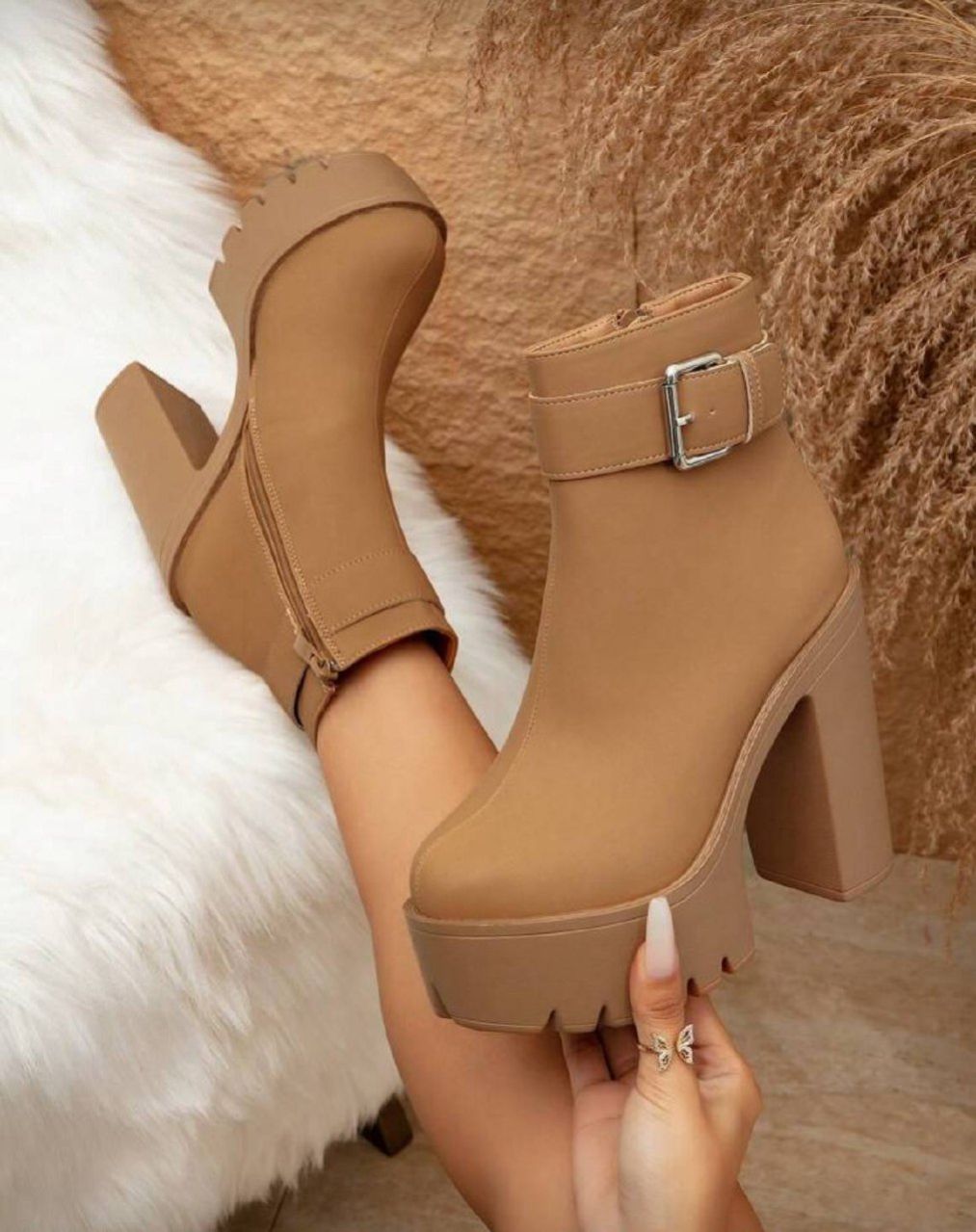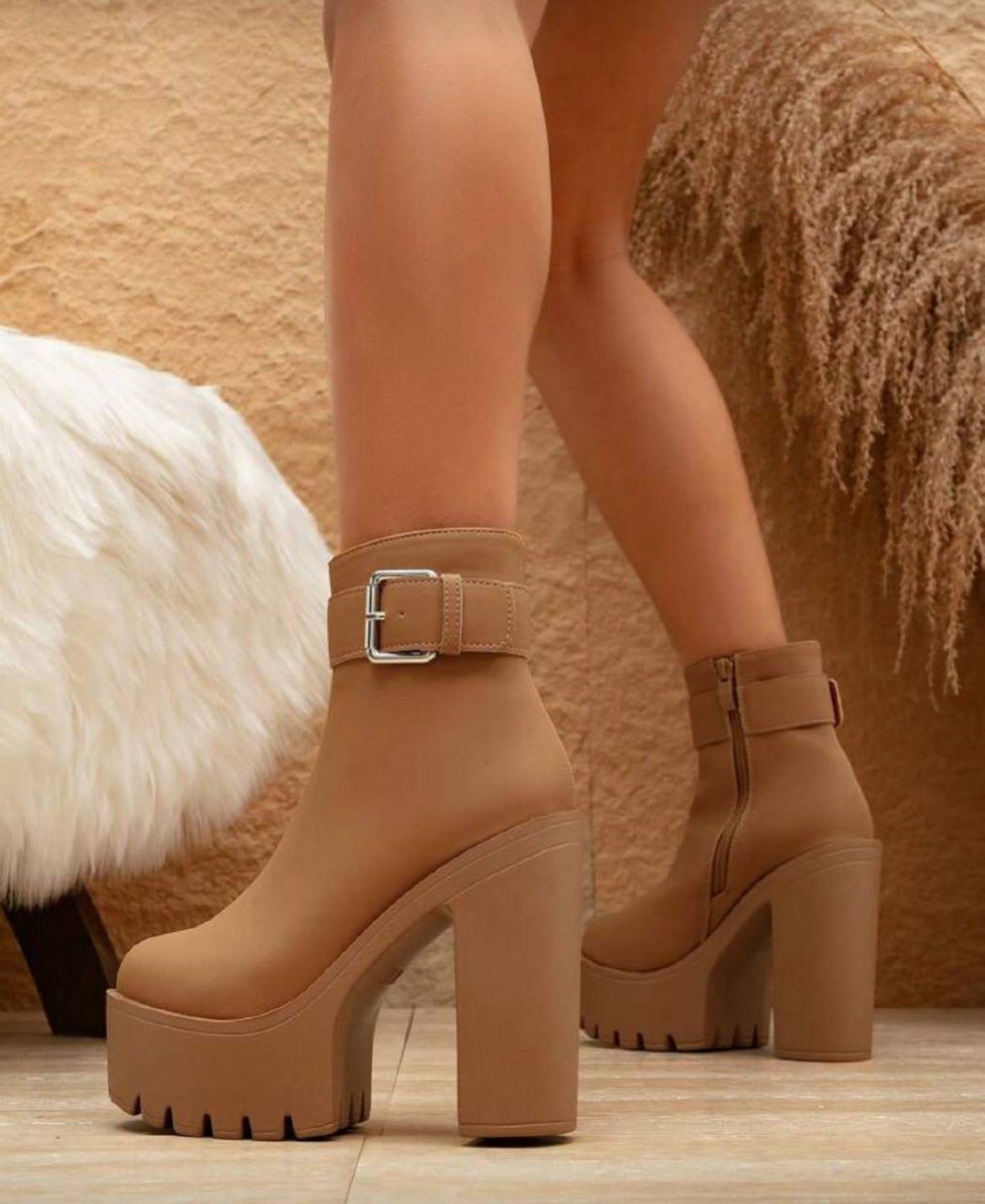 بوت الكاحل والأحذية القصيرة للنساء موضة 2025، خريف/شتاء، طراز جديد، بوت بطراز بريطاني، بوت قصيرة للنساء، كعب سميك، تناسب كل المناسبات، منصة مزدوجة مقاومة للماء، كعب عالي، بوت نسائية سميكة الأسفل مع حزام مشبك