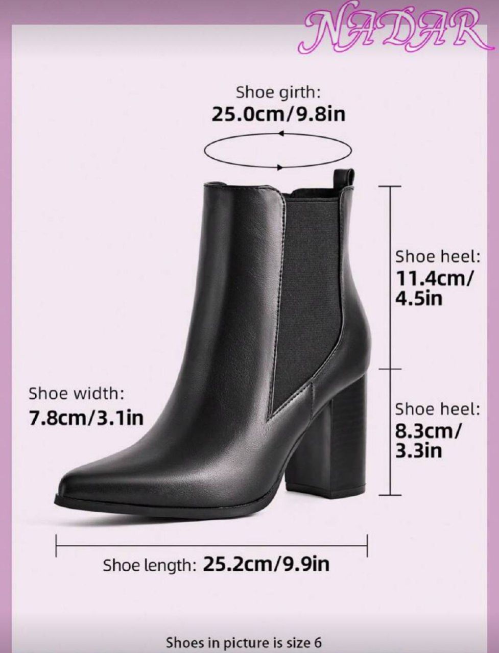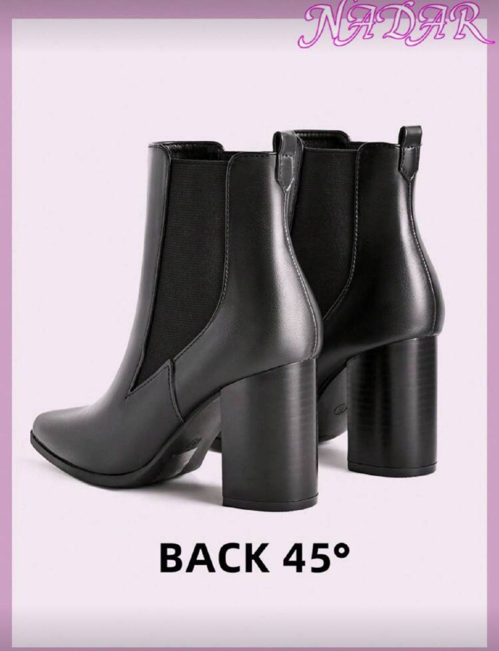 0 Review Of Product بوت تشيلسي للنساء ذات كعب مربع وأصبع مدبب، بوت قصيرة مزيفة من الجلد للخروج والتنقل، مناسبة للخريف والشتاء