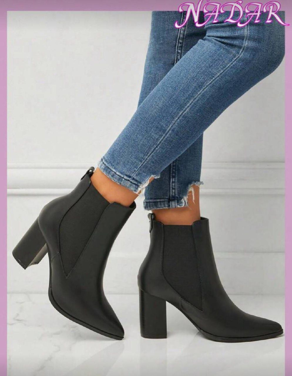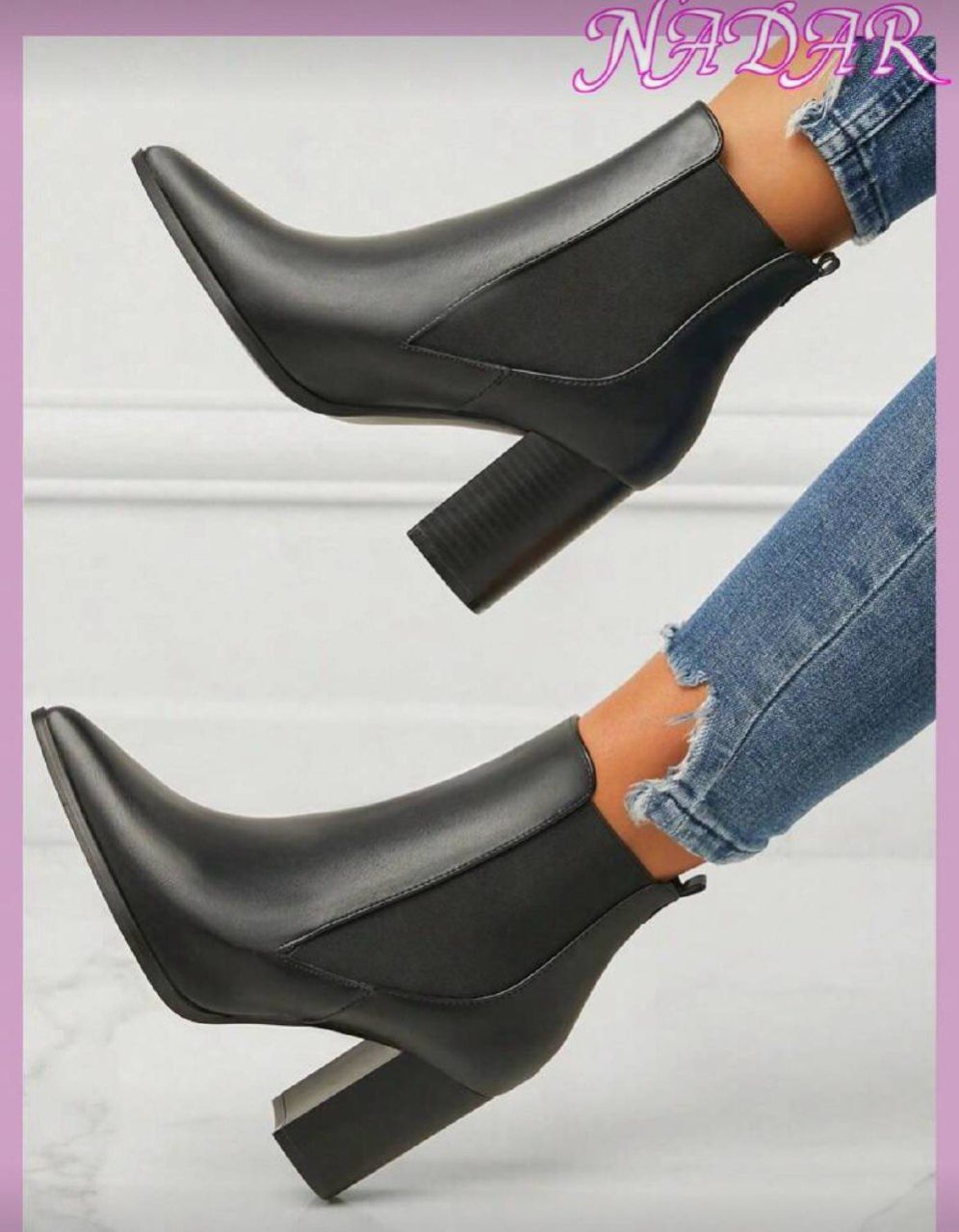 بوت تشيلسي للنساء ذات كعب مربع وأصبع مدبب، بوت قصيرة مزيفة من الجلد للخروج والتنقل، مناسبة للخريف والشتاء