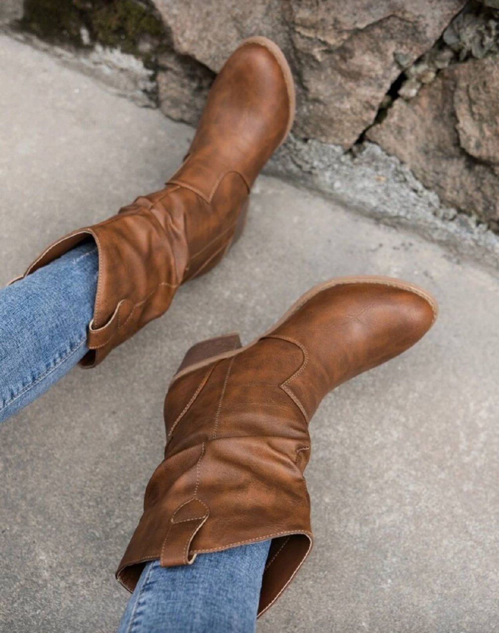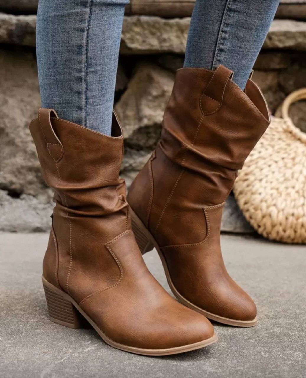 0 Review Of Product بوت غربية للنساء ذات كعب مربع وأصبع مدبب، ديكور رقعة للموسم الانتقالي بين الخريف والشتاء