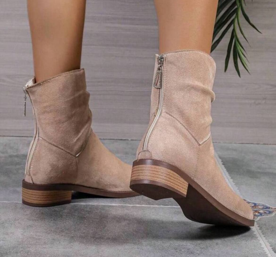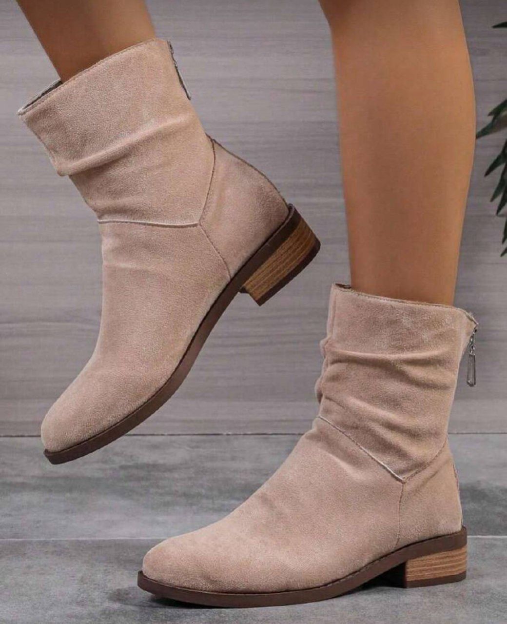 بوت نسائية قصيرة عصرية بسحاب خلفي، لون أحادي، بطراز أوروبي وأمريكي رجعي، طراز غربي جديد للخريف