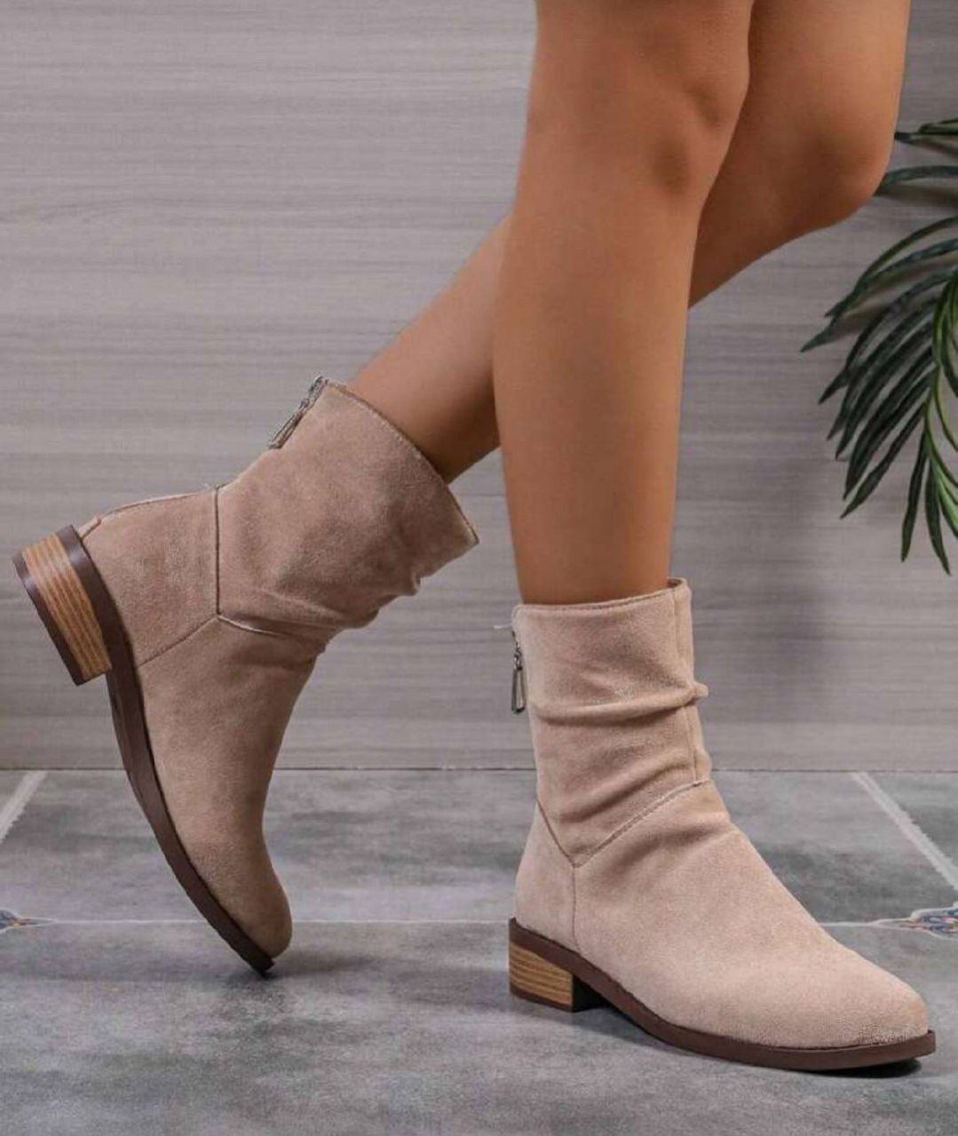 0 Review Of Product بوت نسائية قصيرة عصرية بسحاب خلفي، لون أحادي، بطراز أوروبي وأمريكي رجعي، طراز غربي جديد للخريف