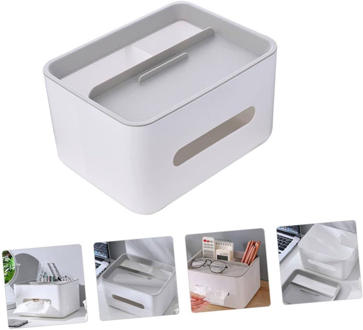 0 Review Of Product حامل مناديل مستطيل بلاستيكي أبيض بسيط من TIDTALEO للمكتب، وحدة واحدة