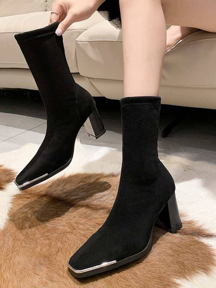 حذاء جورب بمقدمة مربعة وكعب سميك صناعي
