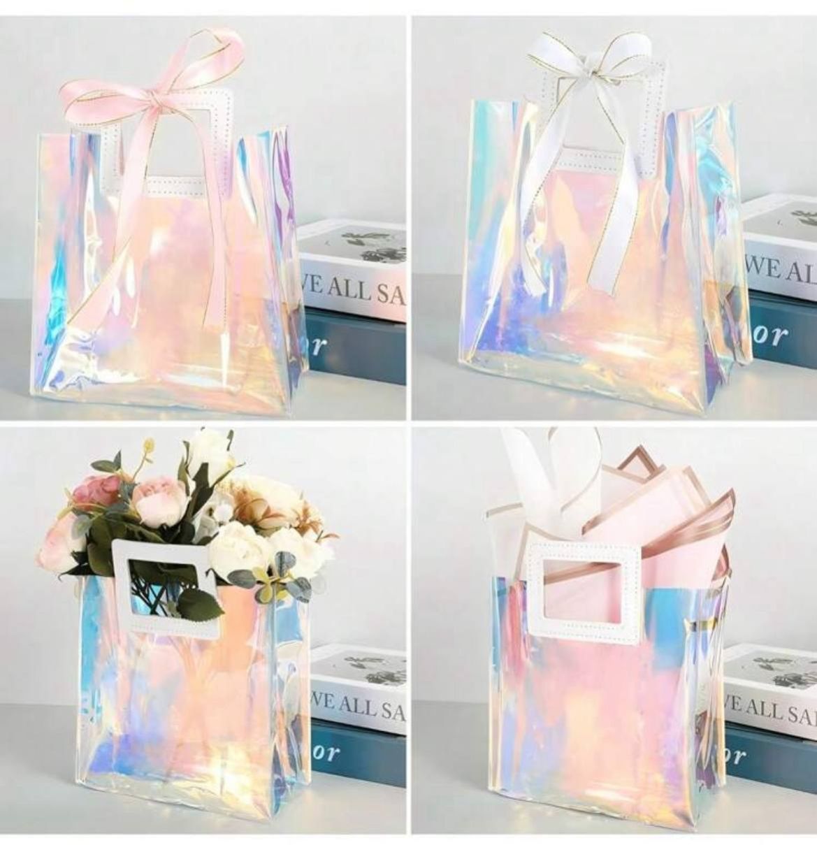 حقيبة هدايا شفافة معدنية نمط ، حقيبة يد من البي في سي لهدايا الأعياد والمناسبات والزفاف وأعياد الميلاد، قابلة لإعادة الاستخدام ومقاومة للماء، حقيبة تسوق، هدايا للأم في عيد الأم واليوم العالمي للأم، هدايا عيد الأم بأقل من 50 دولار