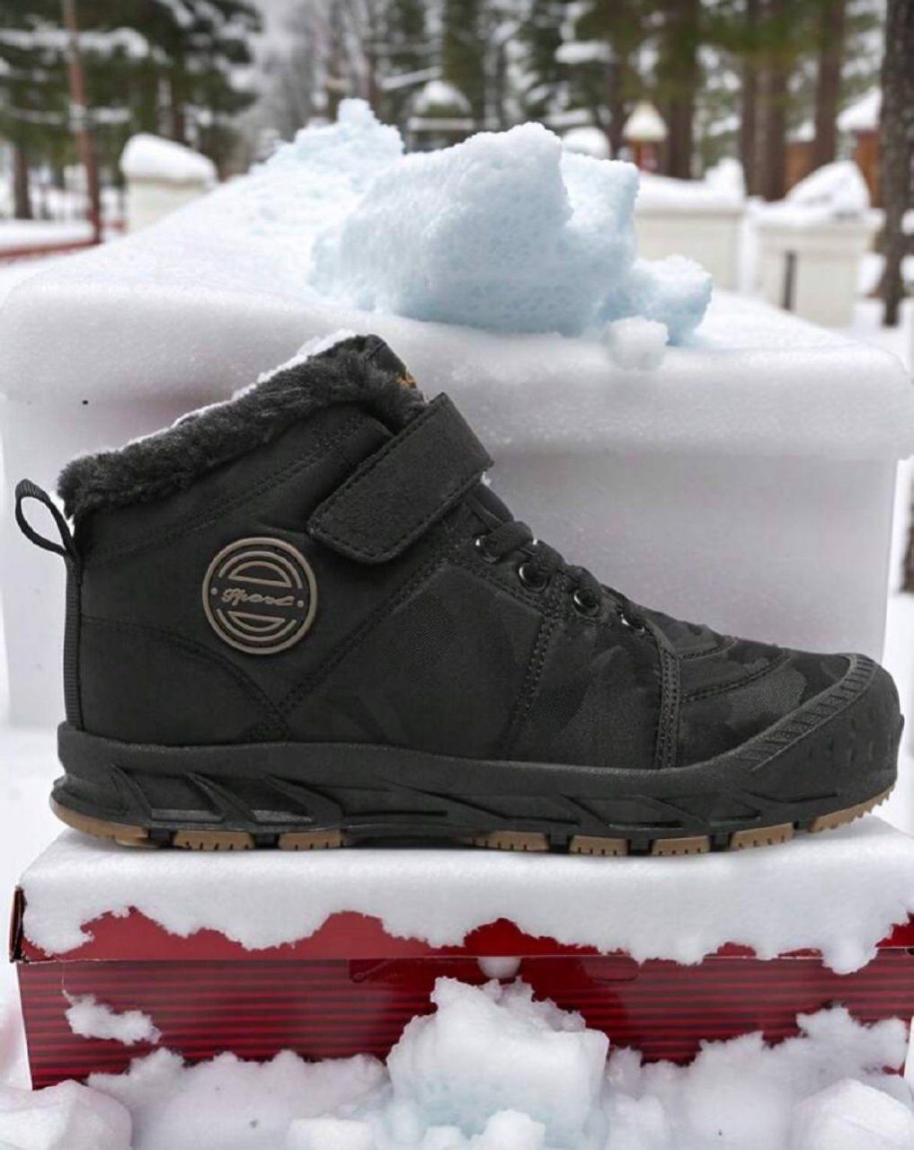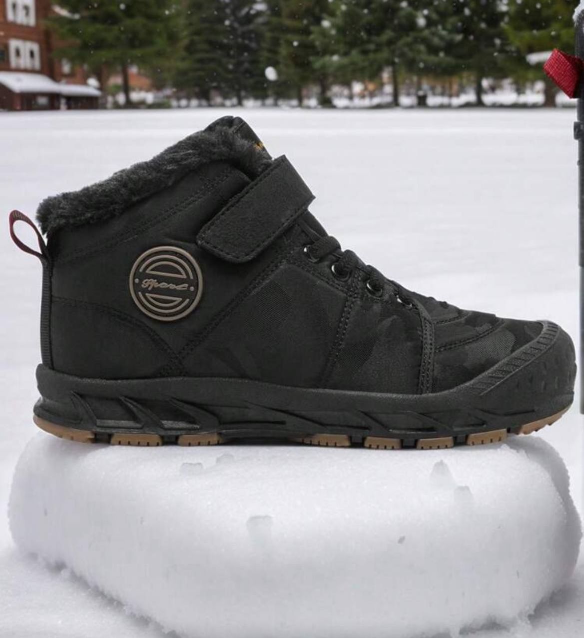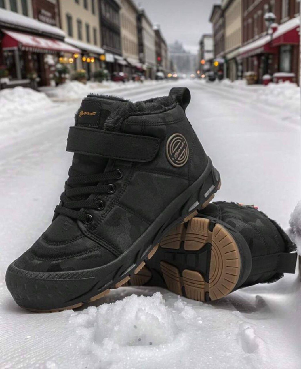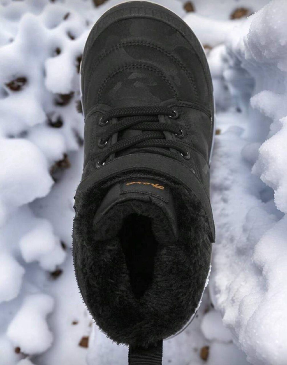 زوج من بوت الثلج للمراهقين، باللون الأسود، بنظام ربط بسحاب وخيط، بتصميم حرفي، بنعل سميك من مطاط TPR، بزخرفة حرفية من القماش، بتصميم أنف دائري متوسط الطول، مبطنة بفرو، مناسبة للاستخدام اليومي والخارجي في الشتاء، بوت ثلج سوداء للمراهقين