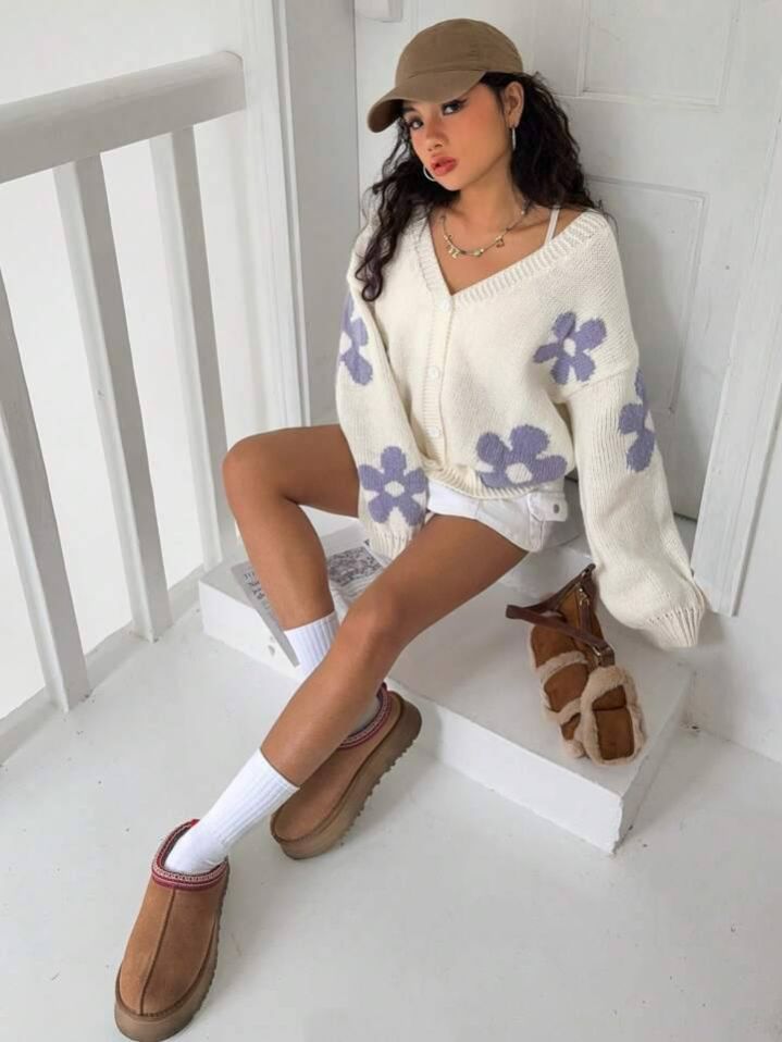 0 Review Of Product سترة كارديجان نسائية محبوكة بنقشة زهور