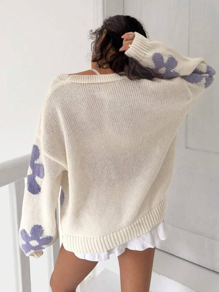 سترة كارديجان نسائية محبوكة بنقشة زهور
