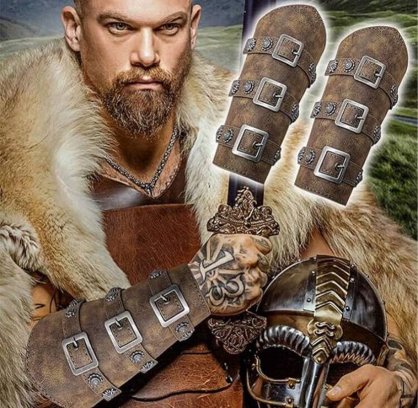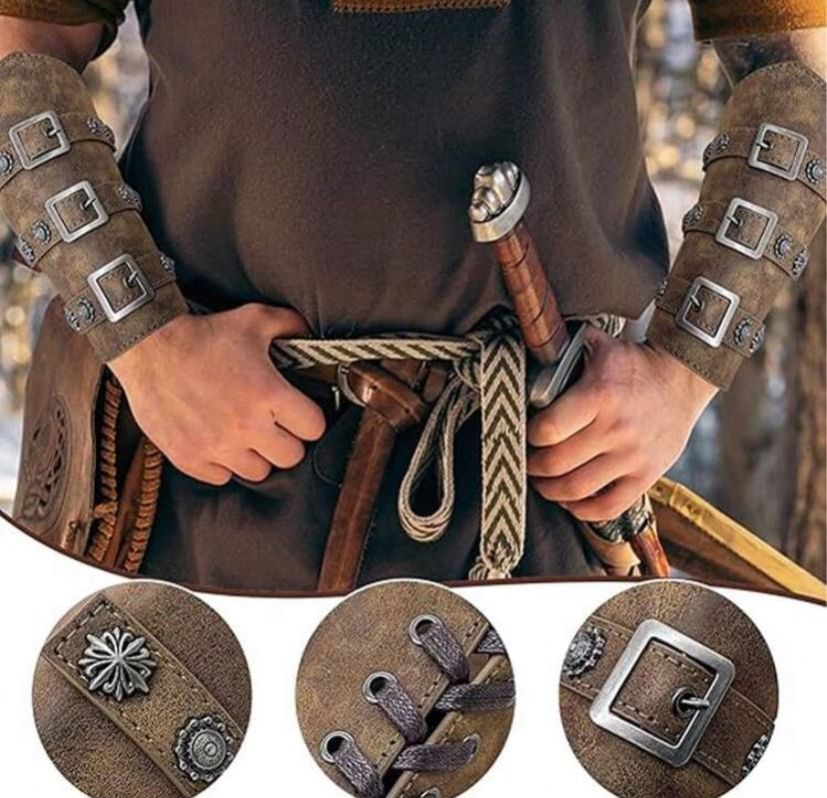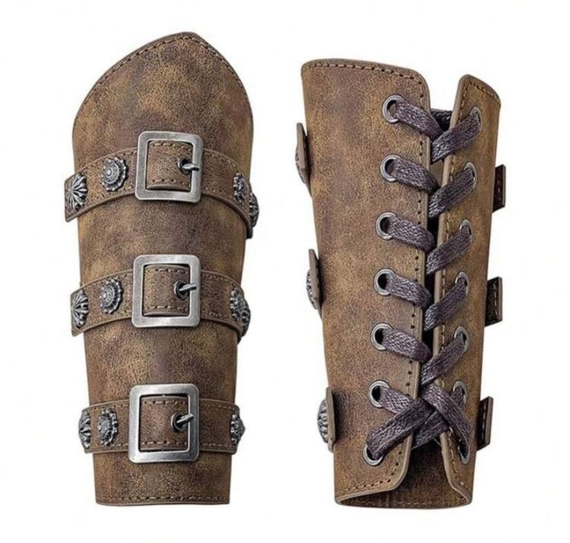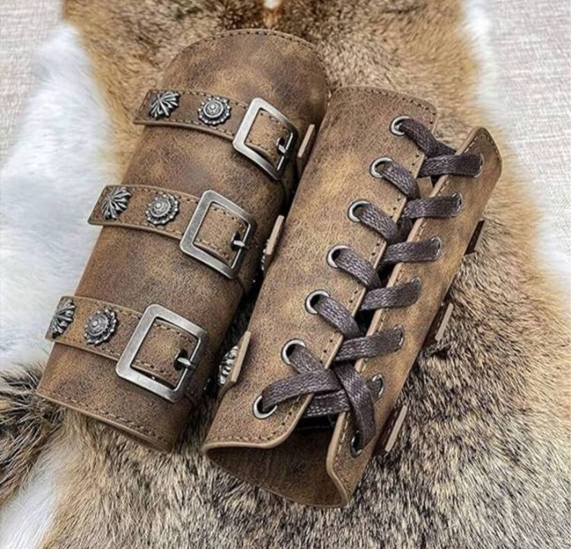 سوار قفاز لحماية الذراع من الجلد من قطعة واحدة مع مشبك عصر النهضة لحماية الذراع للرجال والنساء، أساور معصم بنية من العصور الوسطى، مثالية لعيد الهالوين