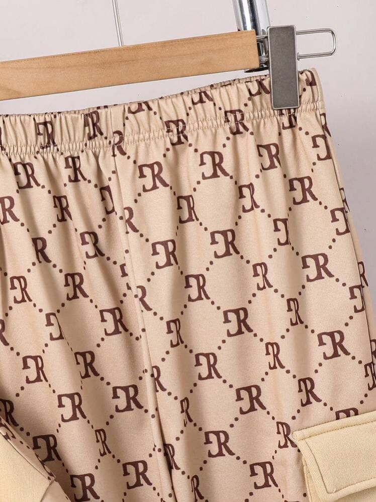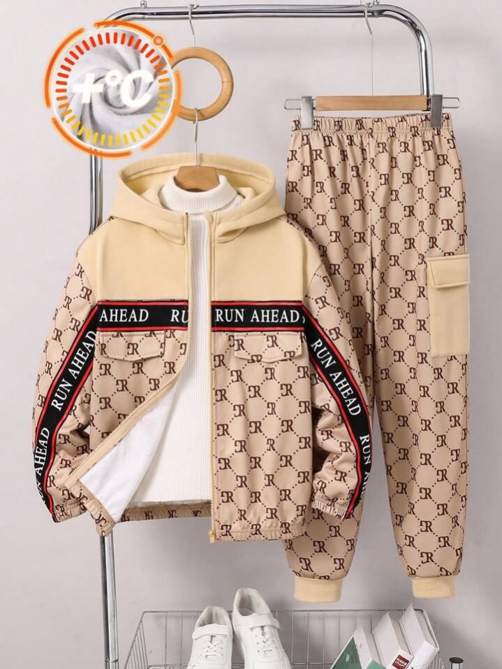 طقم من قطعتين من SHEIN للأولاد الصغار، سويت شيرت بقلنسوة وبنطال رياضي بحافة مضلعة، مناسب للتنقل والمدرسة والعطلات والرياضة والربيع/الصيف/الخريف/الشتاء