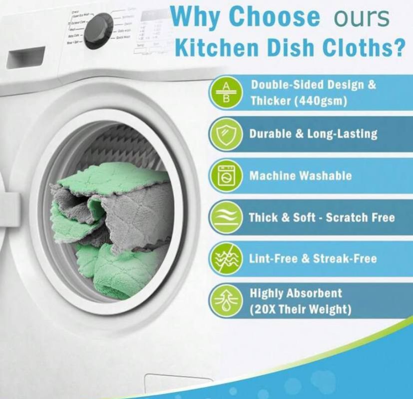 عبوة من 5 مناشف أطباق ماصة من الصوف المرجاني، مناشف أطباق قابلة لإعادة الاستخدام عديمة الرائحة، مناشف تنظيف من الألياف الدقيقة، مناشف أطباق سريعة الجفاف، 15 × 25 سم