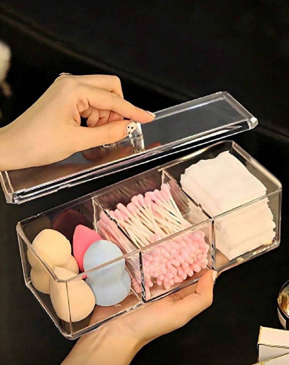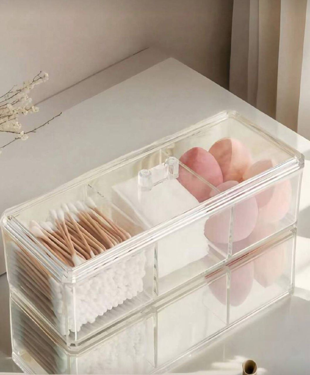 علبة تخزين مكياج بلاستيكية قطعة واحدة ، صندوق تخزين وسادات المكياج على المكتب المنزلي ، أعواد القطن ، فوط إزالة المكياج ، شفافة ، خالية من الغبار ، عالية الجودة ، صندوق تخزين وترتيب ، صندوق تخزين مكياج أنيق وشفاف لترتيب ألواح المكياج والإكسسوارات والمستحضرات والمواد الجمالية ، منظم مكياج لطاولة التزيين والحمام ، لحفلات العطلات والشاطئ والغرفة النوم ، سعة كبيرة