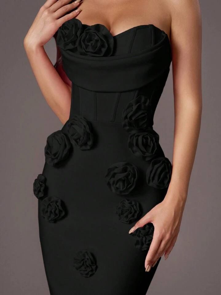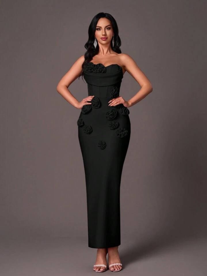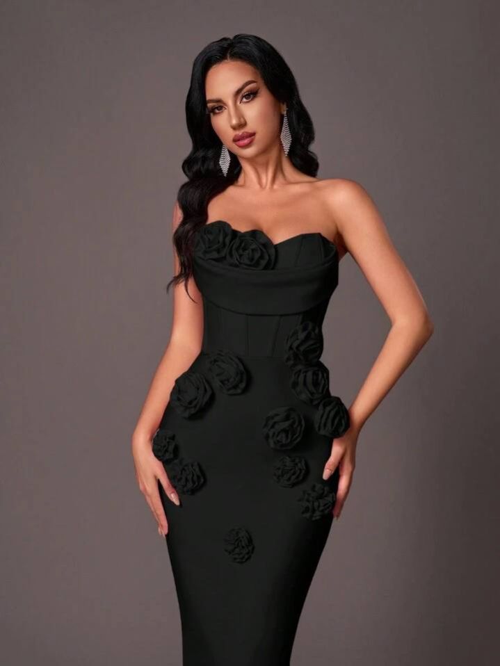 فستان حورية البحر الرسمي الأنيق بدون حمالات من Glamrae، بتصميم أنيق بدون أكمام مع تطريز زهور ثلاثي الأبعاد