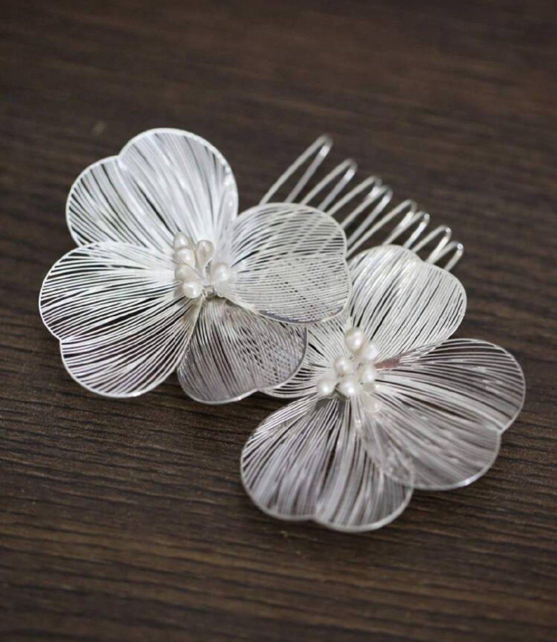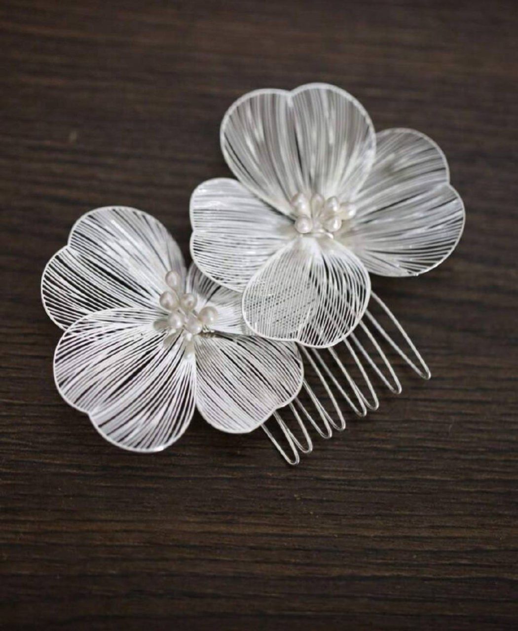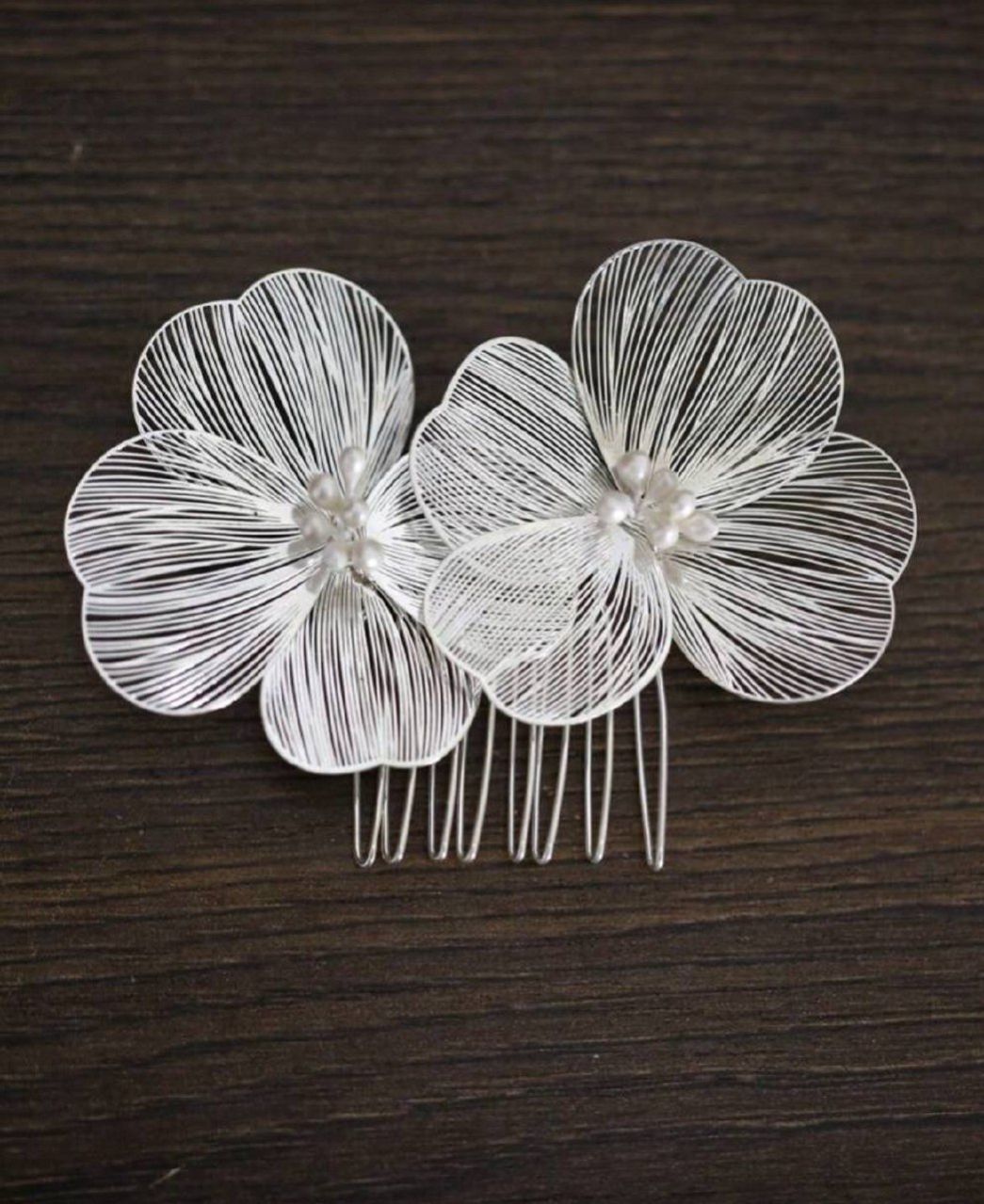 قطعة واحدة من مشط الشعر الحرفية المزين بفيونكة فضية، مناسب للحفلات الزفاف