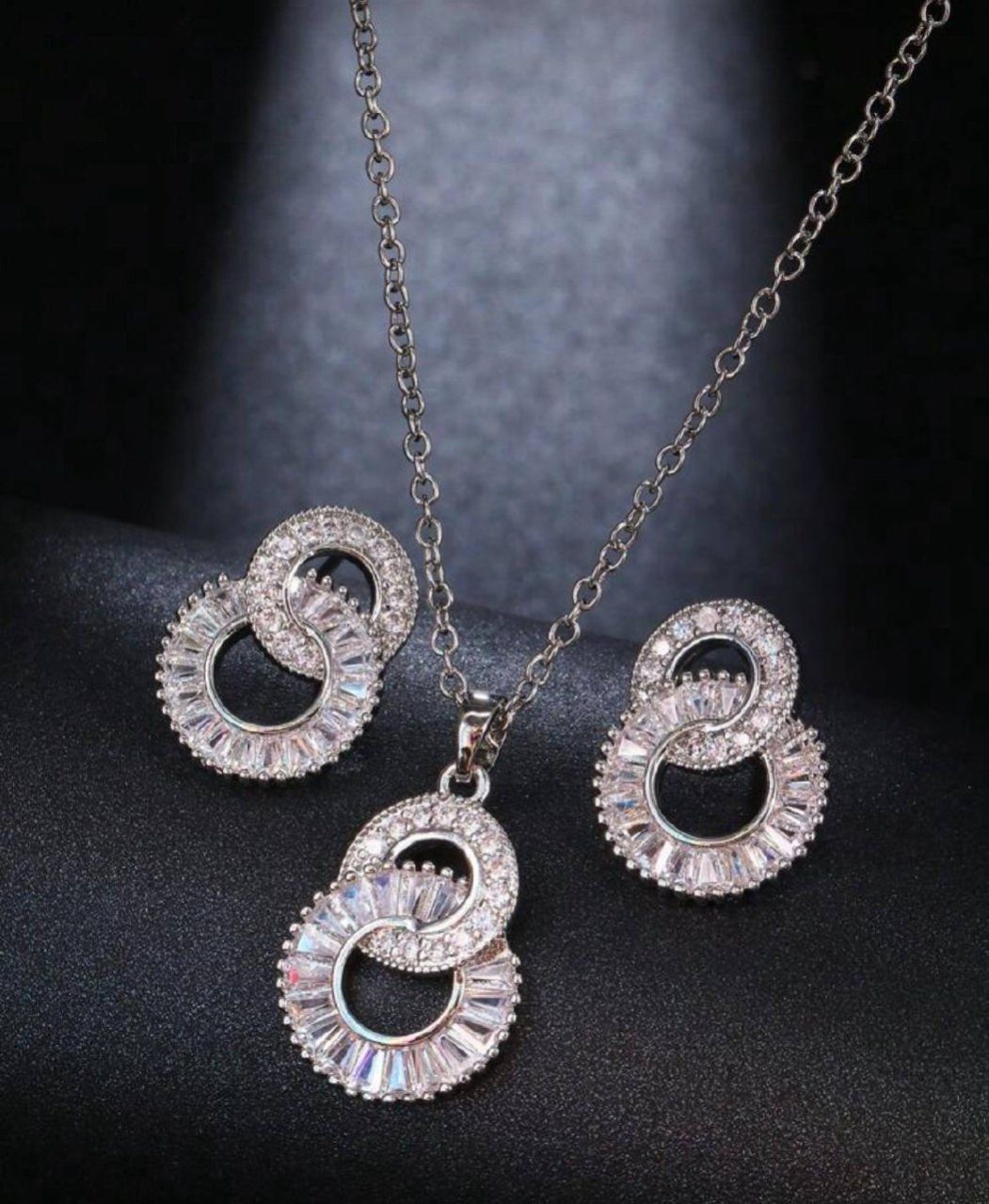 قطعتان من طقم مجوهرات الزفاف الفاخر المصنوع من اللؤلؤ الاصطناعي للنساء، أقراط من الزركونيا المكعبة وقلادة، إكسسوارات الزفاف