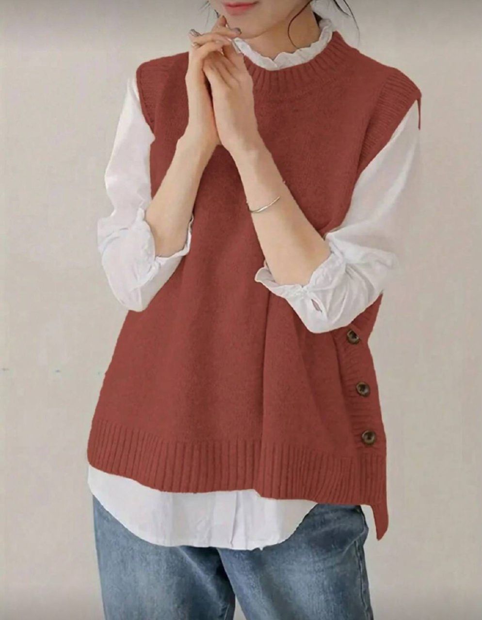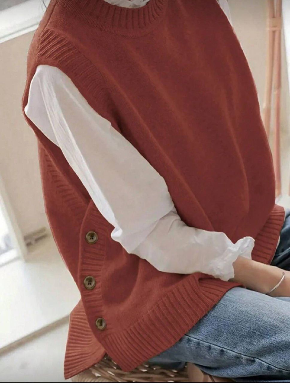 كنزة صوفية صدرية كنزة ناعمة وخالية من الأكمام، بلون أحادي مصنوعة من الأنسجة المحبوكة للربيع والخريف، ملابس نسائية كاجوال مريحة للارتداء اليومي